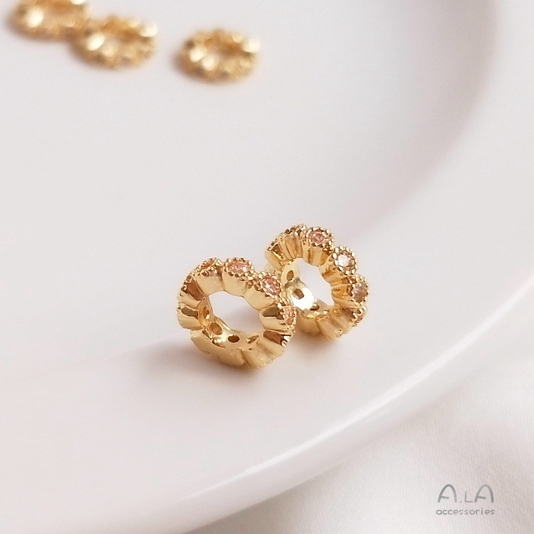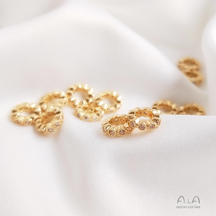 14K 정품 골드 색상 보존 마이크로 상감 지르콘 다이아몬드 링 스페이서 비즈 쥬얼리 액세서리 수제 diy 귀걸이 목걸이 펜던트스토어 가기