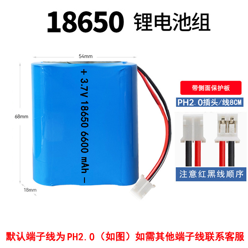 • 18650 6600mah+ 보호 보드 PH2.0 빨간색과 검정색 순서