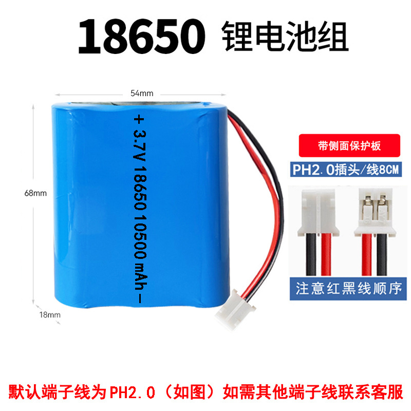 • 18650 10500mah+ 보호 보드 PH2.0 빨간색과 검정색 순서