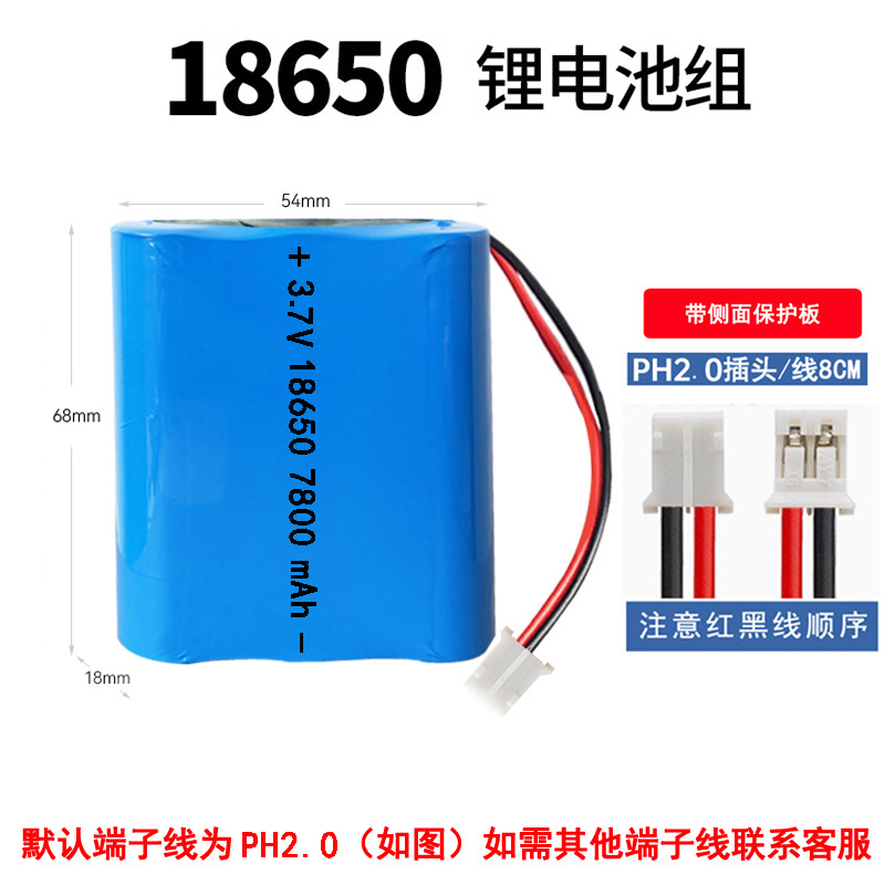 • 18650 7800mah+ 보호 보드 PH2.0 빨간색과 검정색 순서