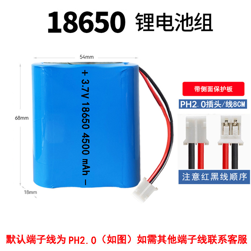• 18650 4500mah+ 보호 보드 PH2.0 빨간색과 검정색 순서