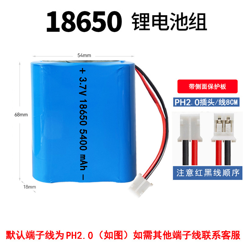• 18650 5400mah+ 보호 보드 PH2.0 빨간색과 검정색 순서