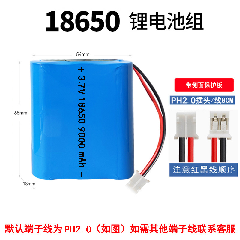 • 18650 9000mah+ 보호 보드 PH2.0 빨간색과 검정색 순서