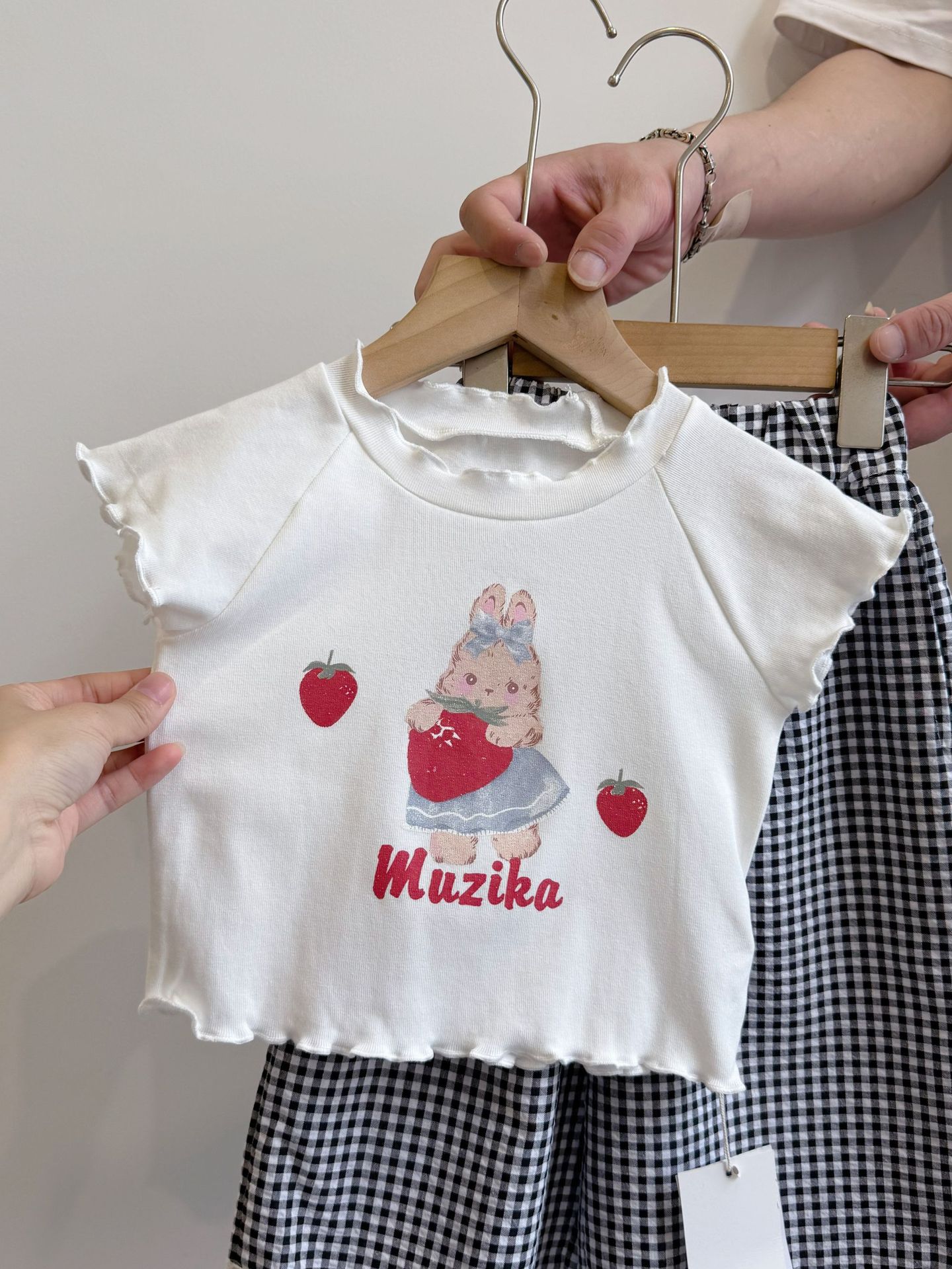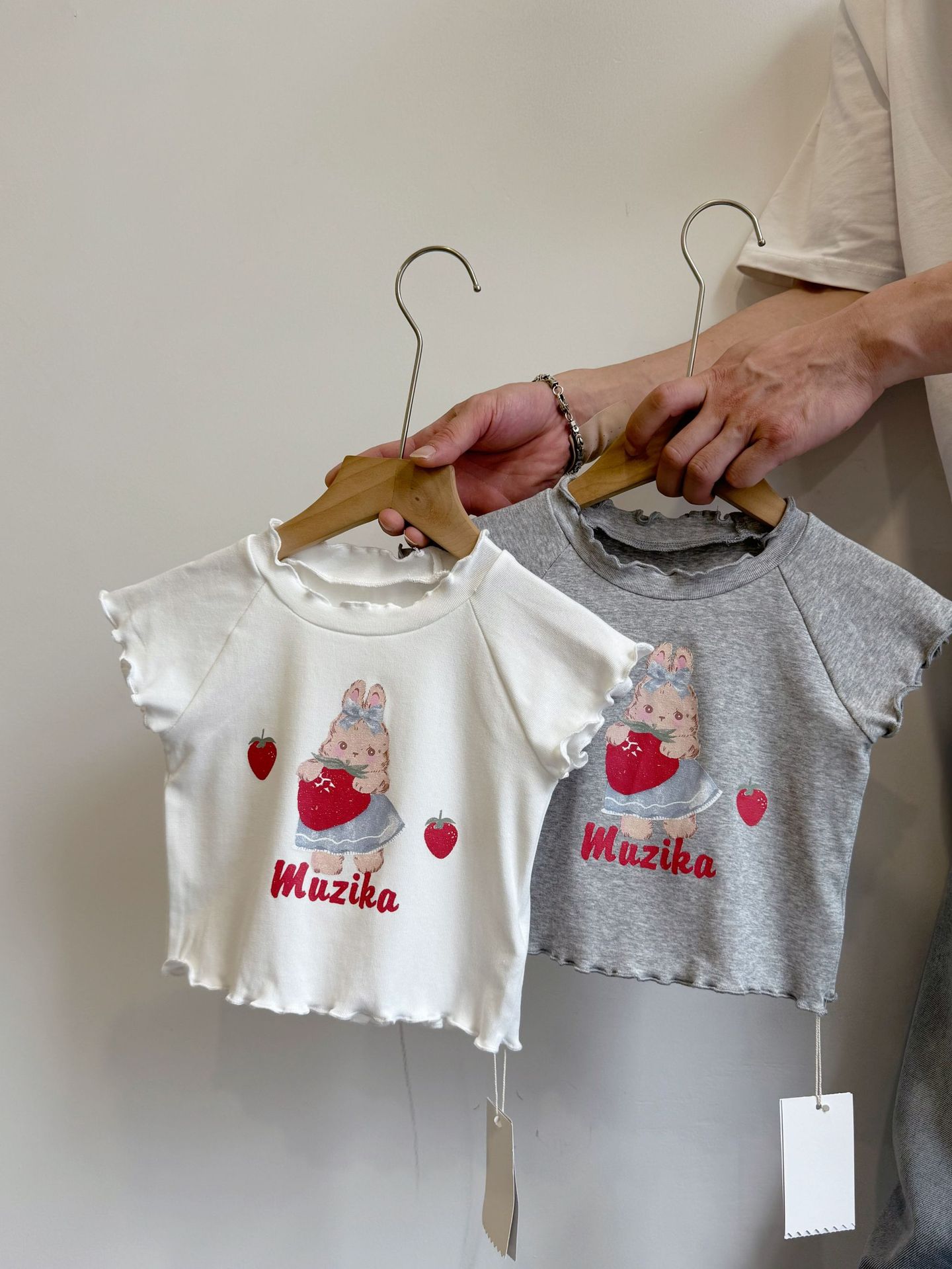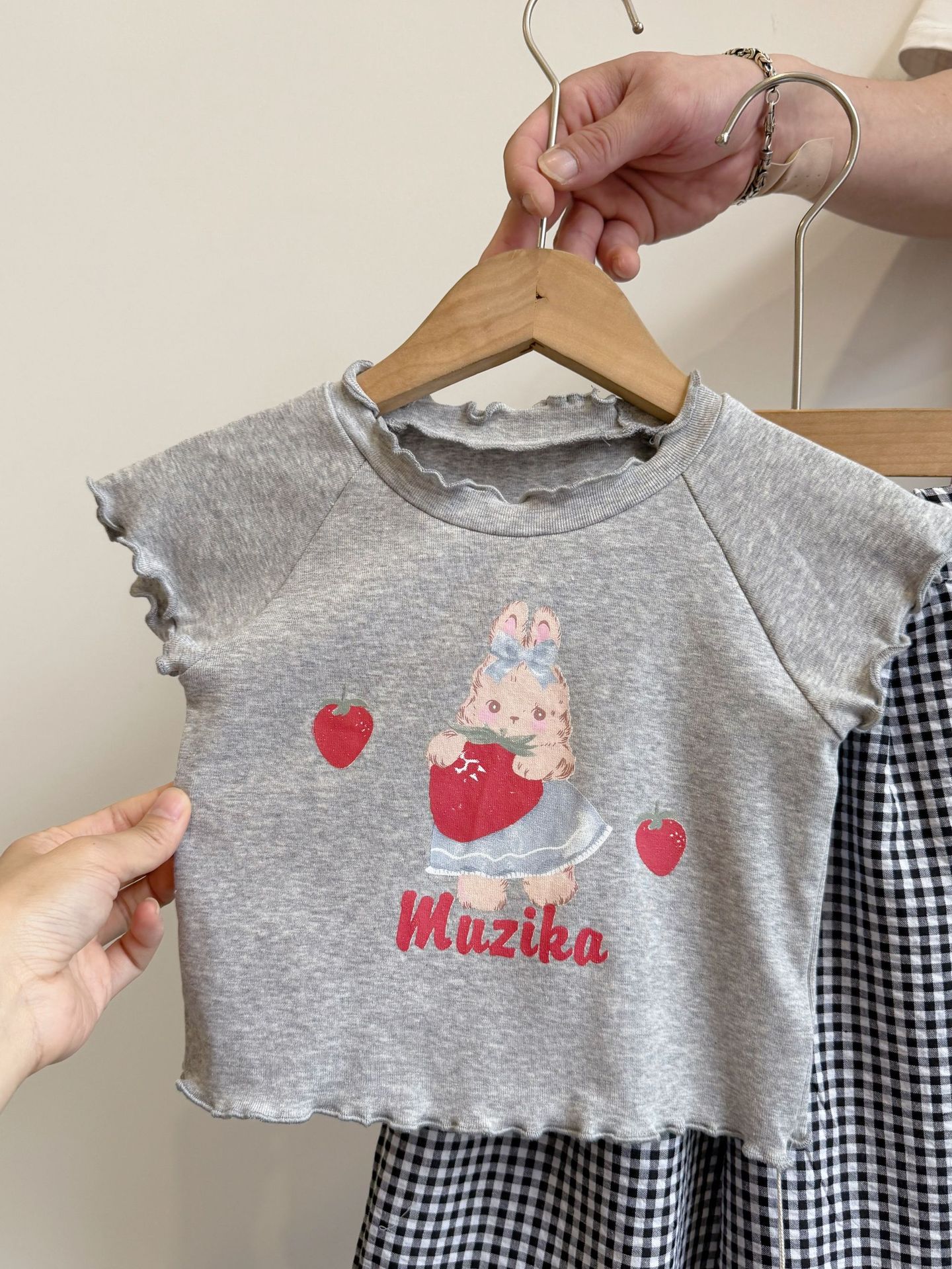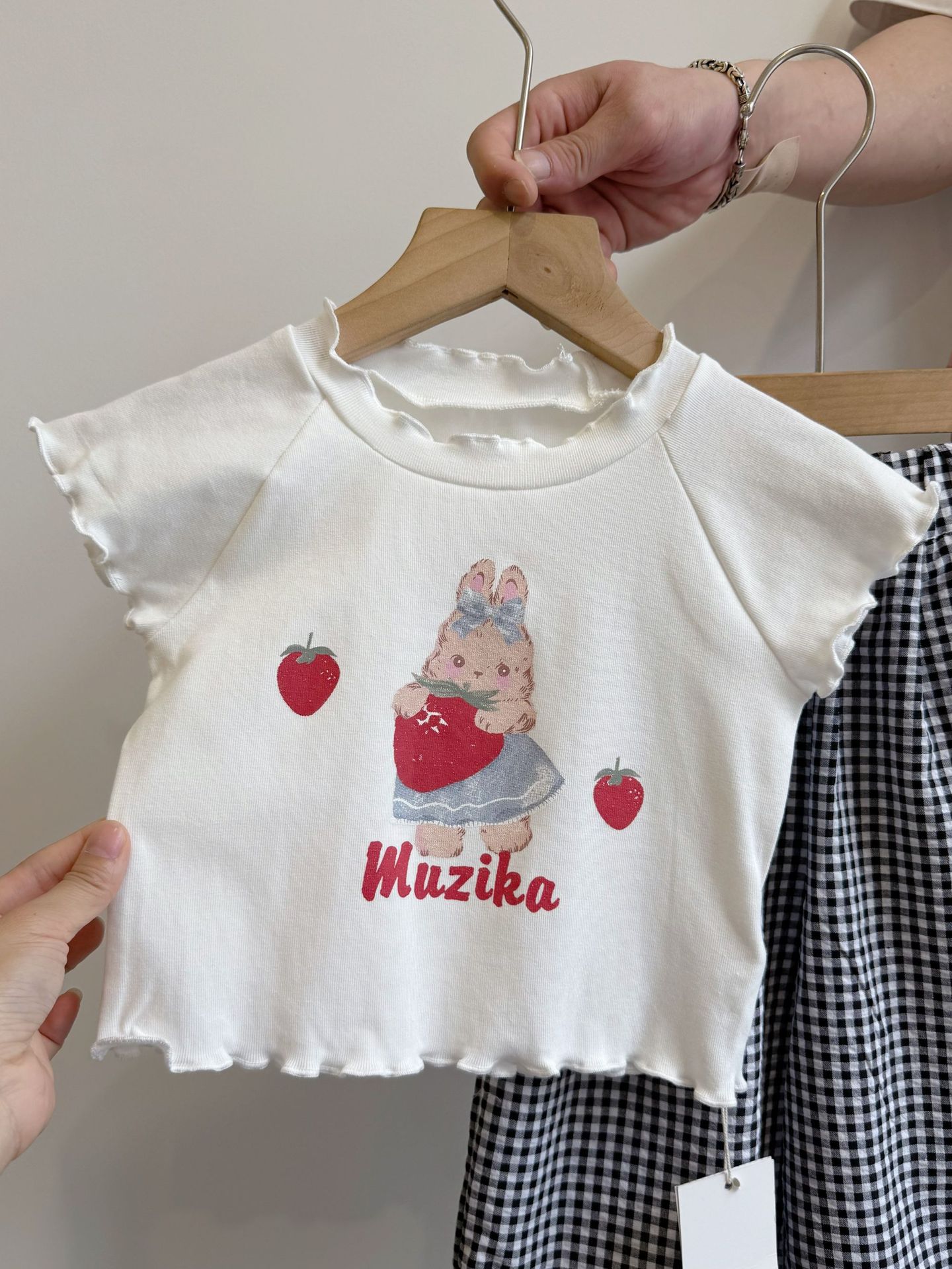 2025 새로운 여름 어린이 반팔 티셔츠 한국 스타일 코튼 바닥 셔츠 소녀 토끼 여름 탑