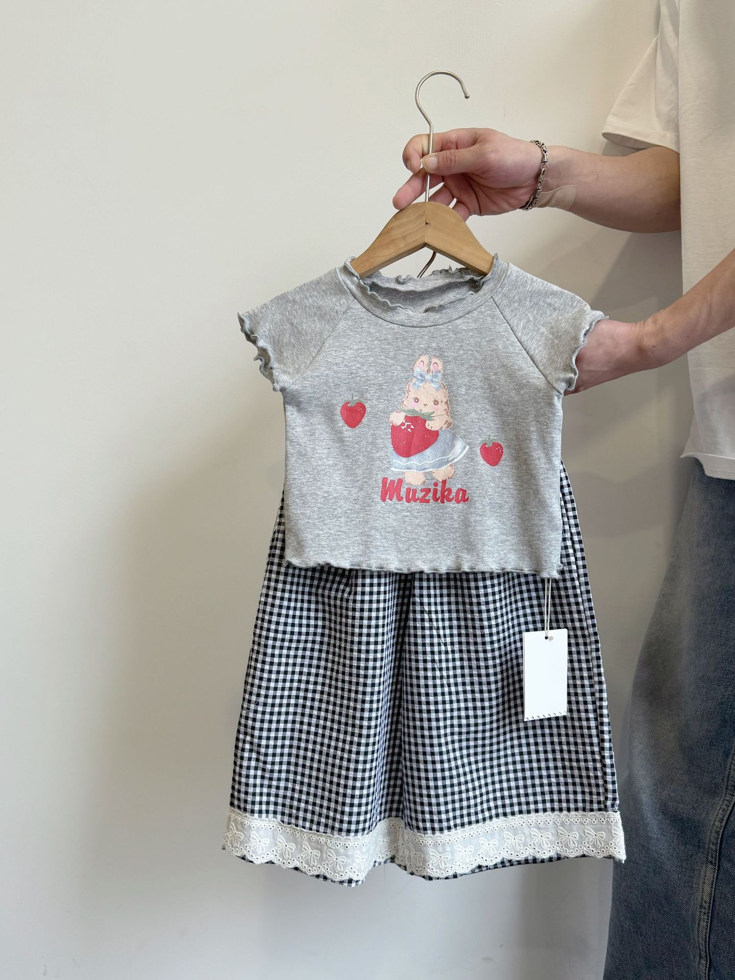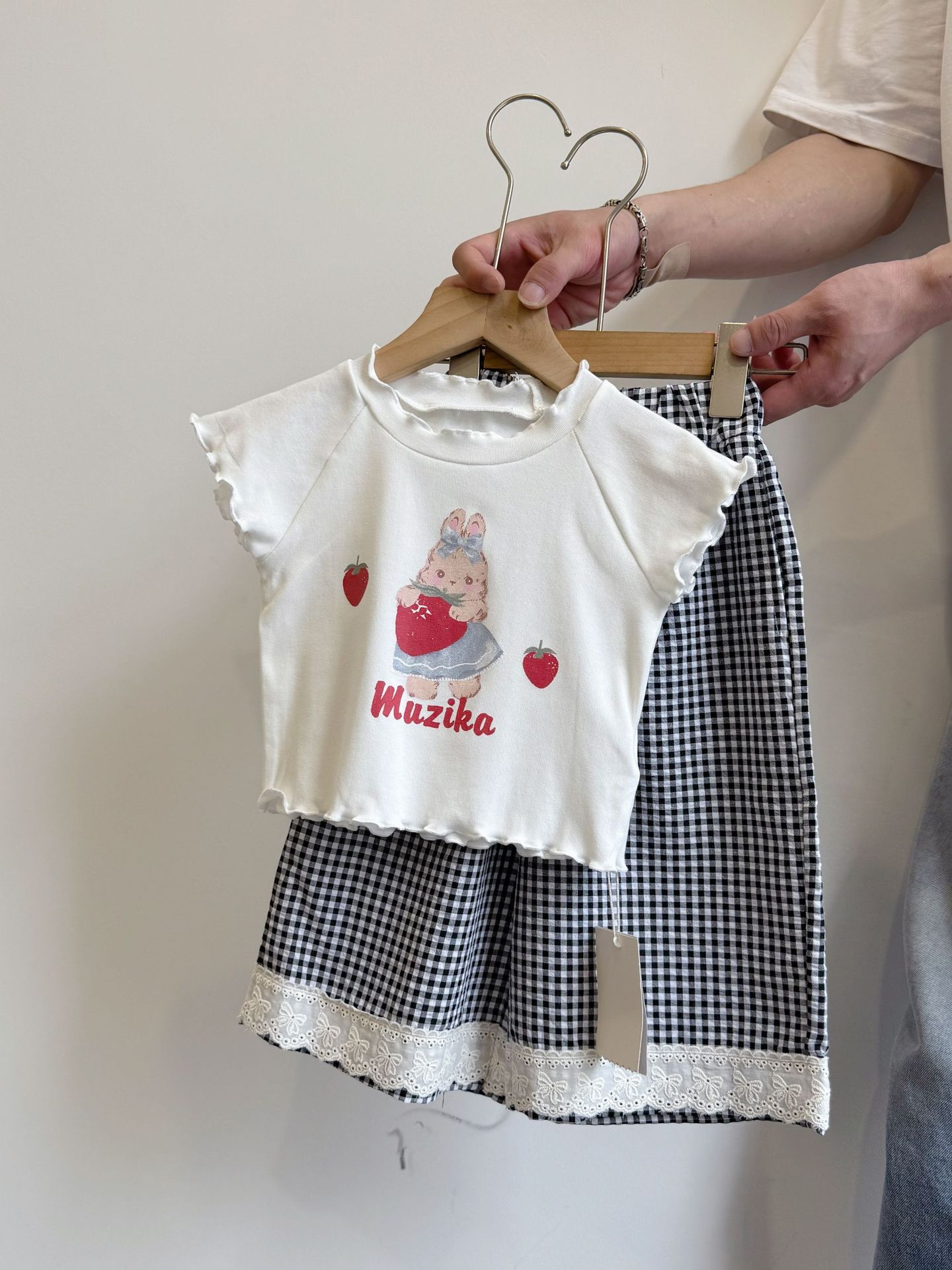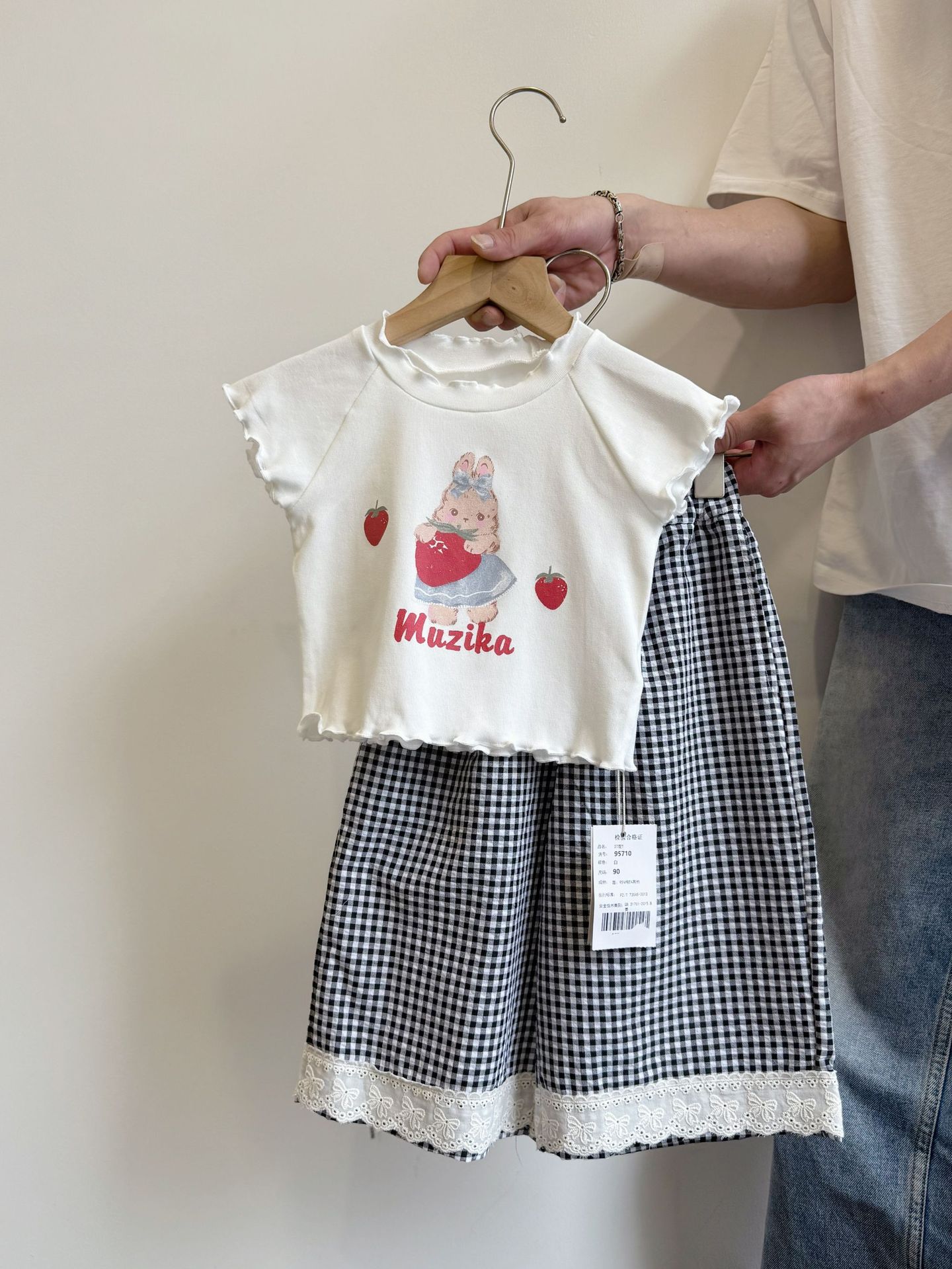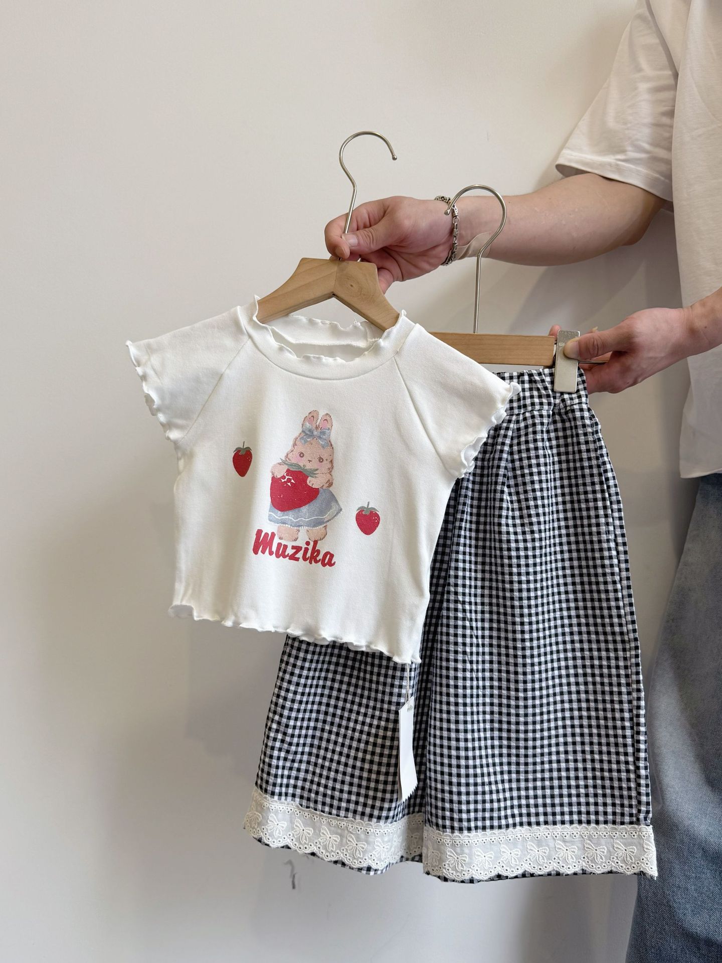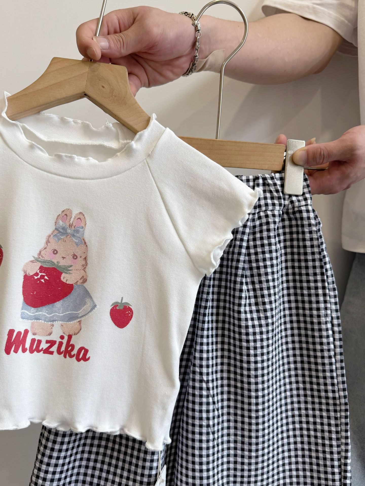 2025 새로운 여름 어린이 반팔 티셔츠 한국 스타일 코튼 바닥 셔츠 소녀 토끼 여름 탑