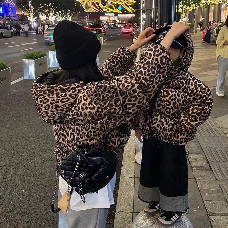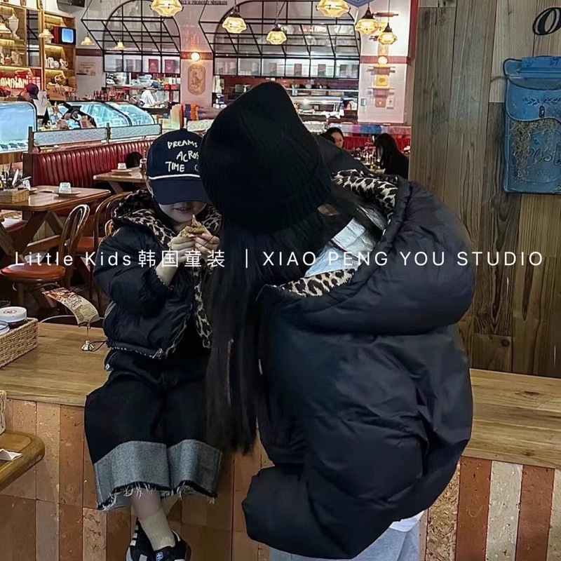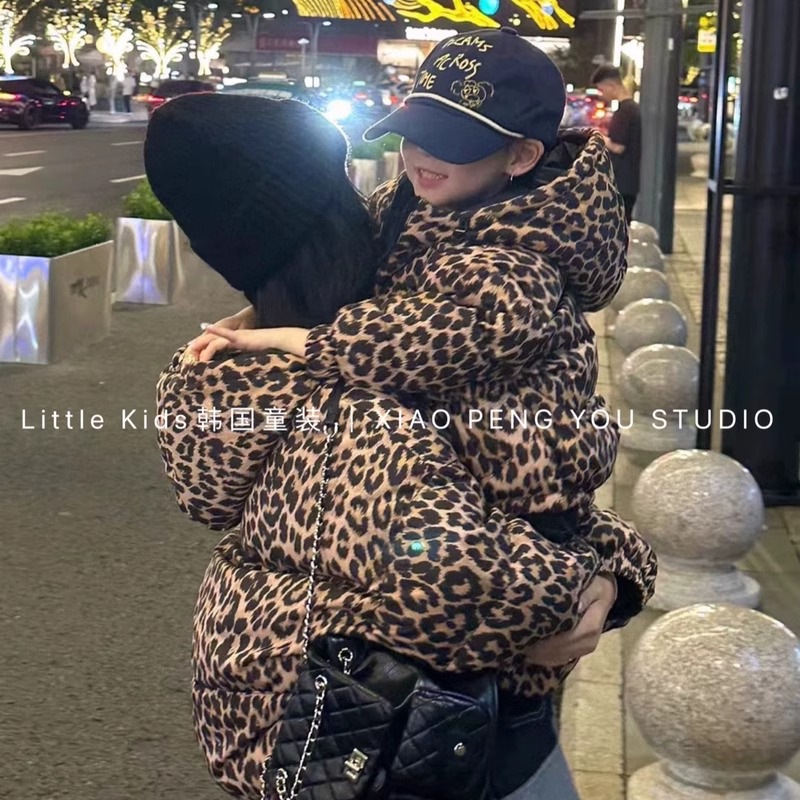 여아용 레오파드 프린트 면 코트 2025 신상 겨울옷 중대형 어린이용 양면 착용 가능 두꺼운 후드 면 코트스토어 가기
