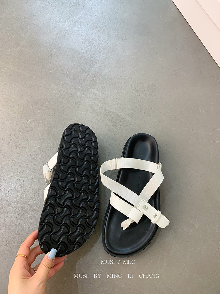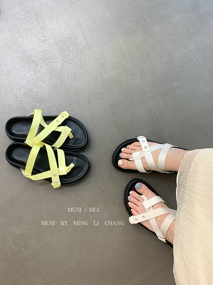 똥 밟는 느낌이 들지 않고 발이 피곤하지 않은 여성용 여름 아우터용 캐주얼 두꺼운 밑창 슬리퍼, 해변 휴가용 비치 샌들, 끈 로마 신발