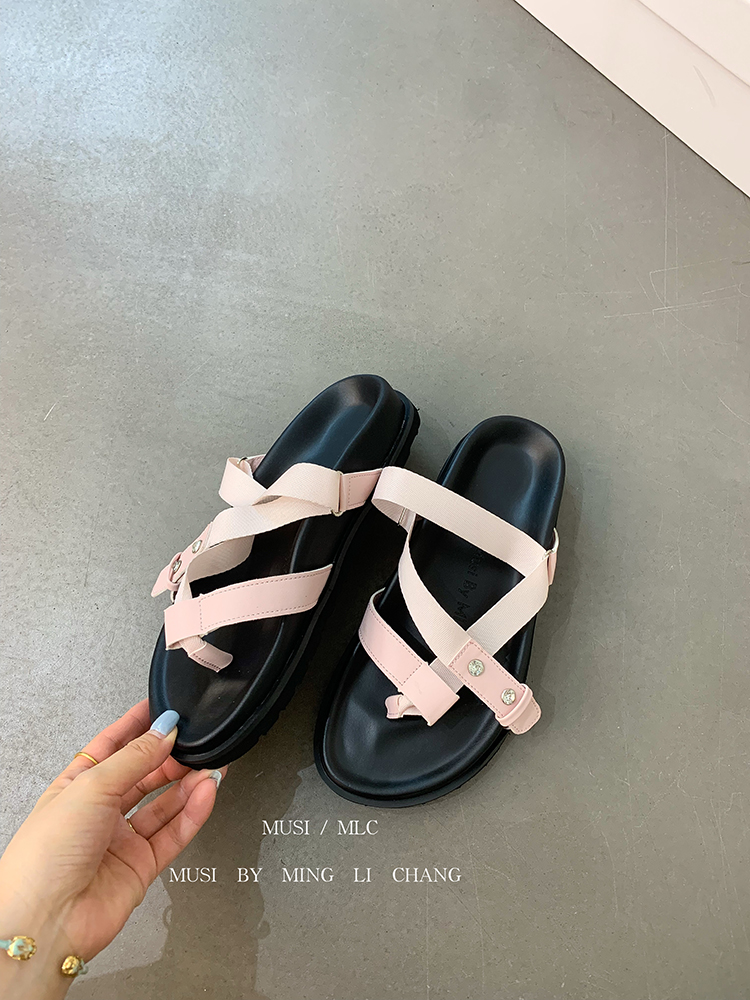 똥 밟는 느낌이 들지 않고 발이 피곤하지 않은 여성용 여름 아우터용 캐주얼 두꺼운 밑창 슬리퍼, 해변 휴가용 비치 샌들, 끈 로마 신발스토어 가기