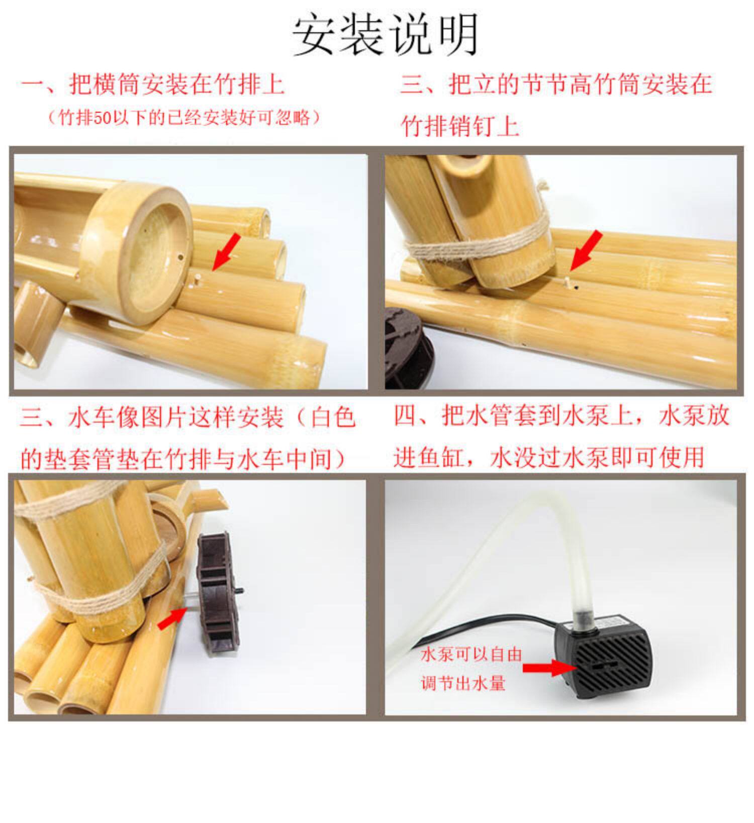 • 대나무 뗏목 길이 50cm, 대나무 물레방아 포함(어항 제외)