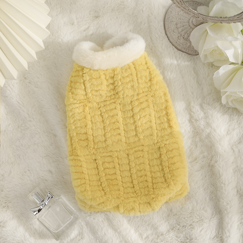 • 작은 토끼털 면 코트 - 노란색에 벨벳과 두꺼움을 더한 것
