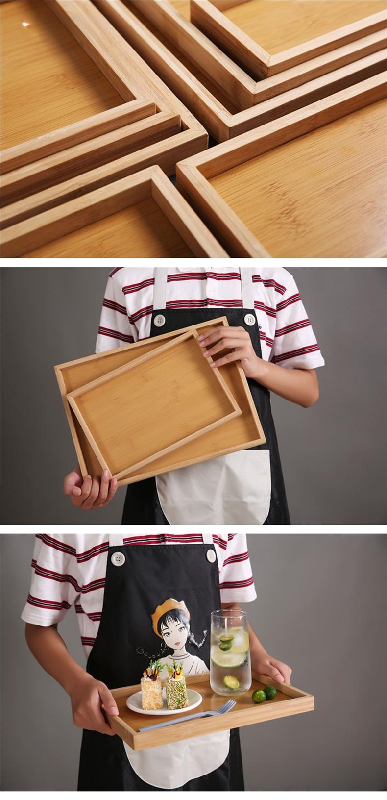 대나무 나무 트레이 단단한 나무 트레이 직사각형 대나무 트레이 나무 트레이 원형 트레이 차 트레이 바베큐 스낵 케이크 나무스토어 가기