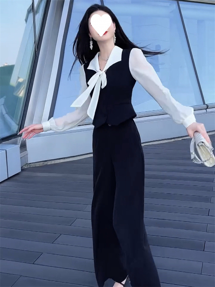 2024 인터넷 연예인 스타일 패션 슈트 초가을 리본 긴팔 탑