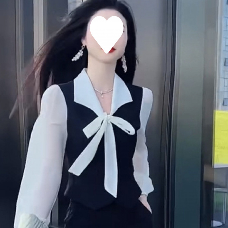 2024 인터넷 연예인 스타일 패션 슈트 초가을 리본 긴팔 탑스토어 가기