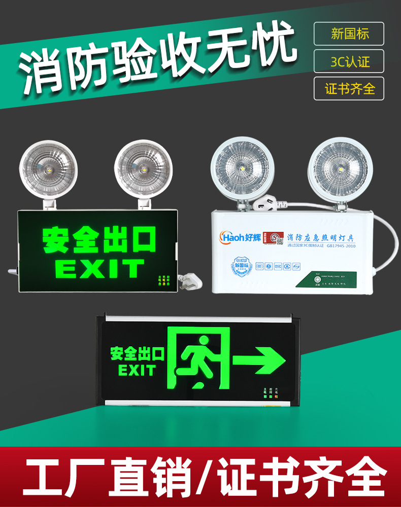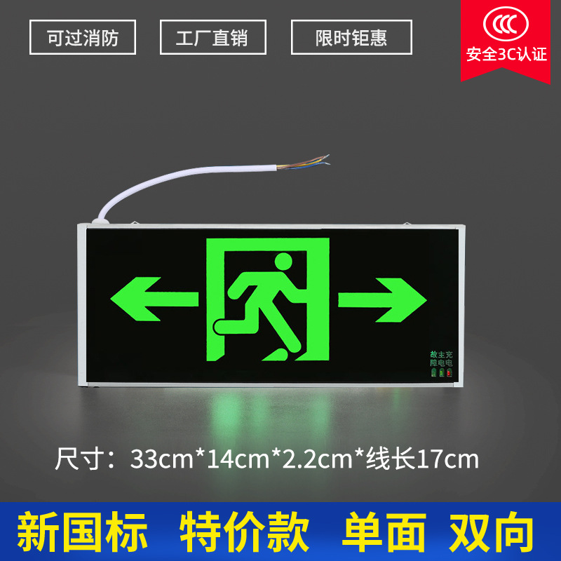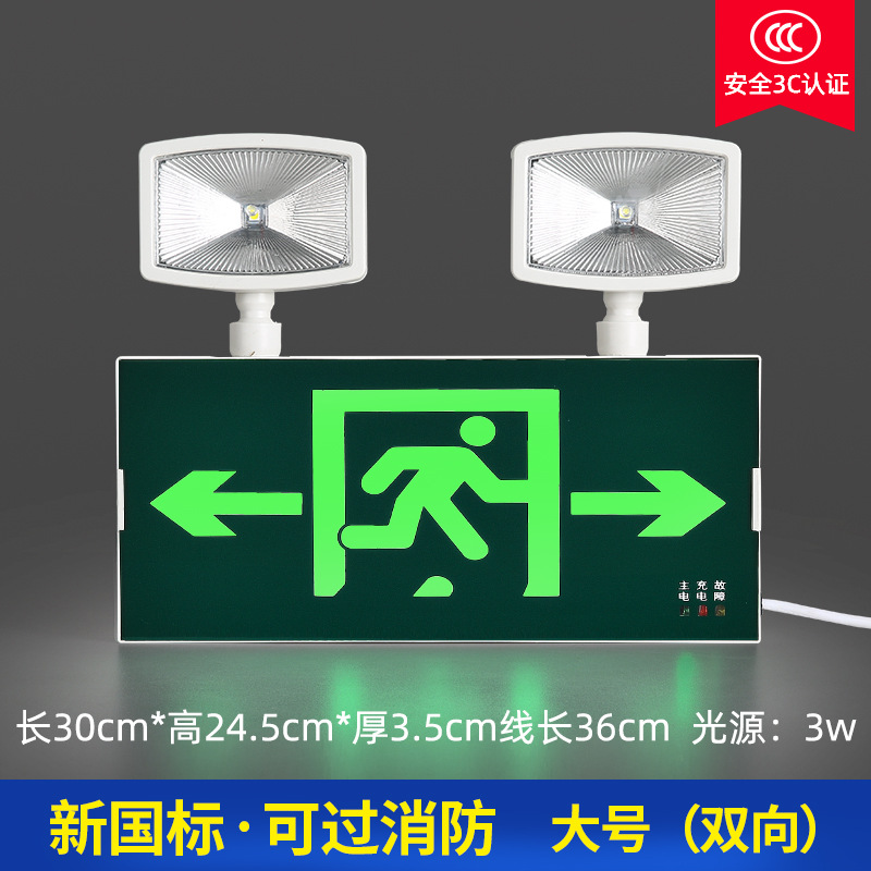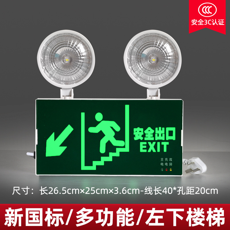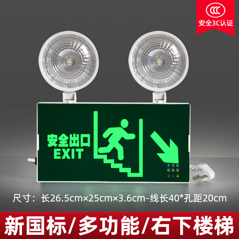 화재 비상 조명 새로운 국가 표준 LED 안전 출구 표시 2-in-1 표시등 대피 비상 조명
