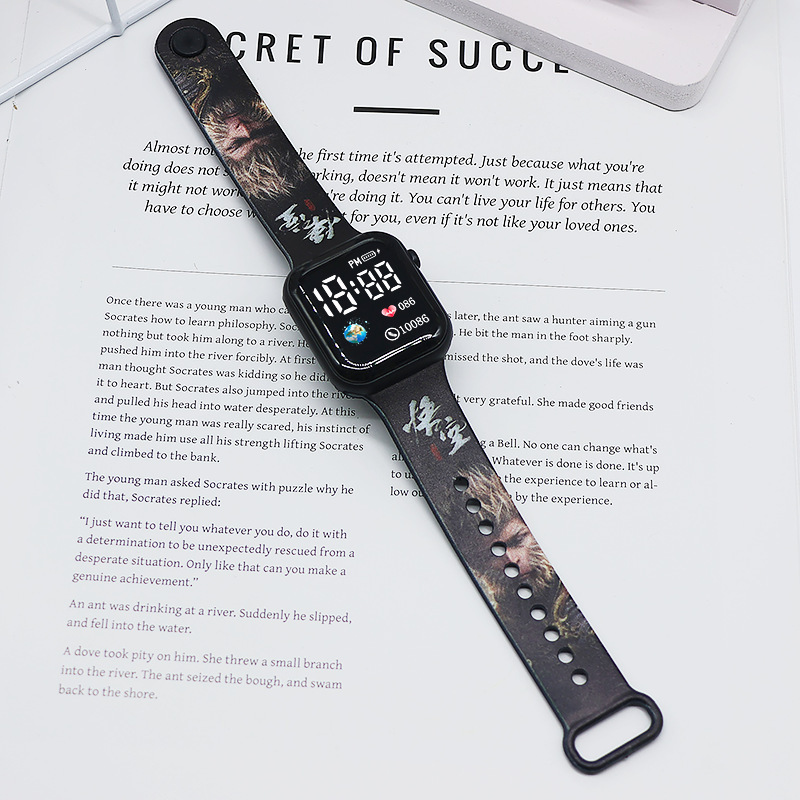 재고 도매 Wukong 새로운 그림 인쇄 LED 사랑 심장/지구 전자 시계 만화 학생 귀여운 멋진 버튼