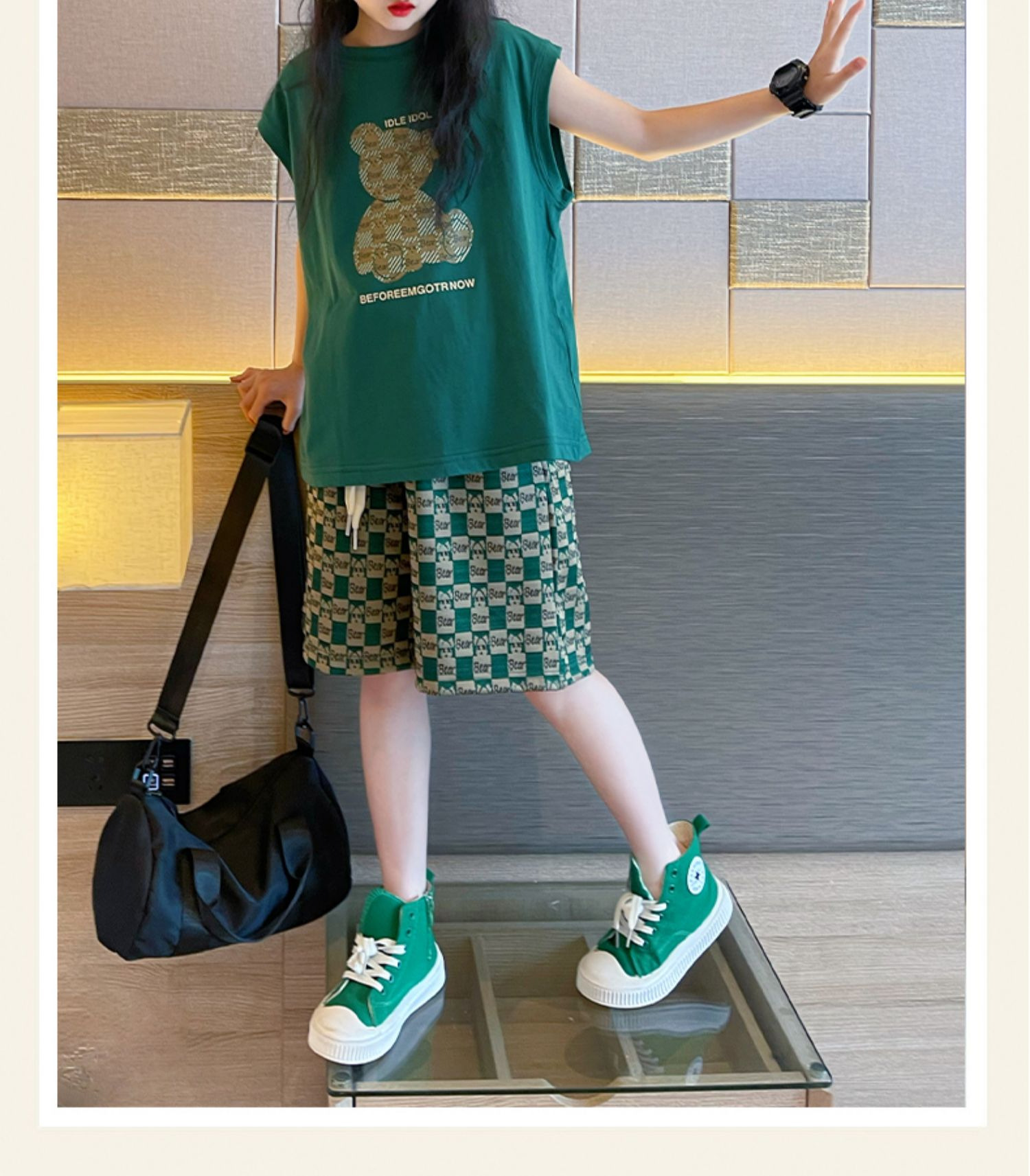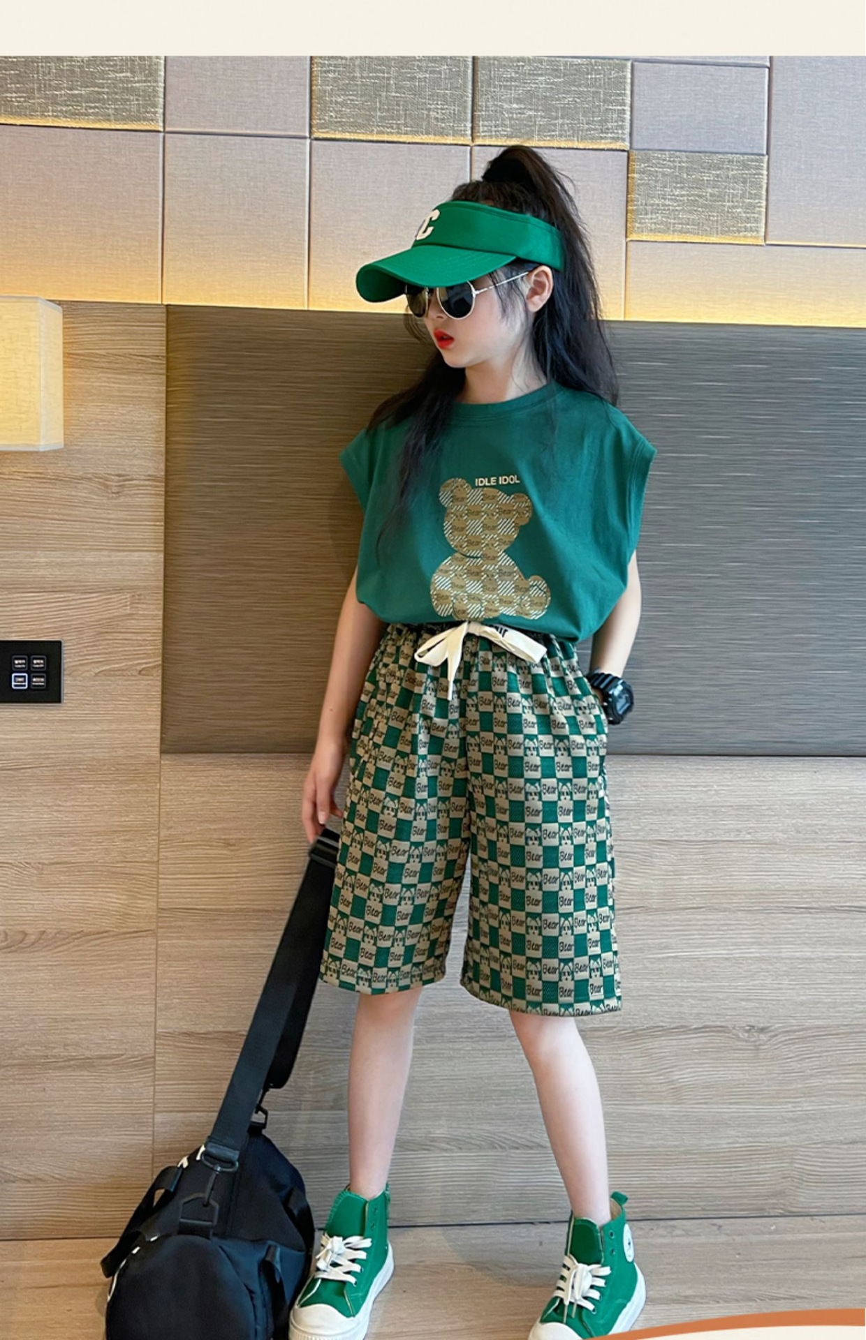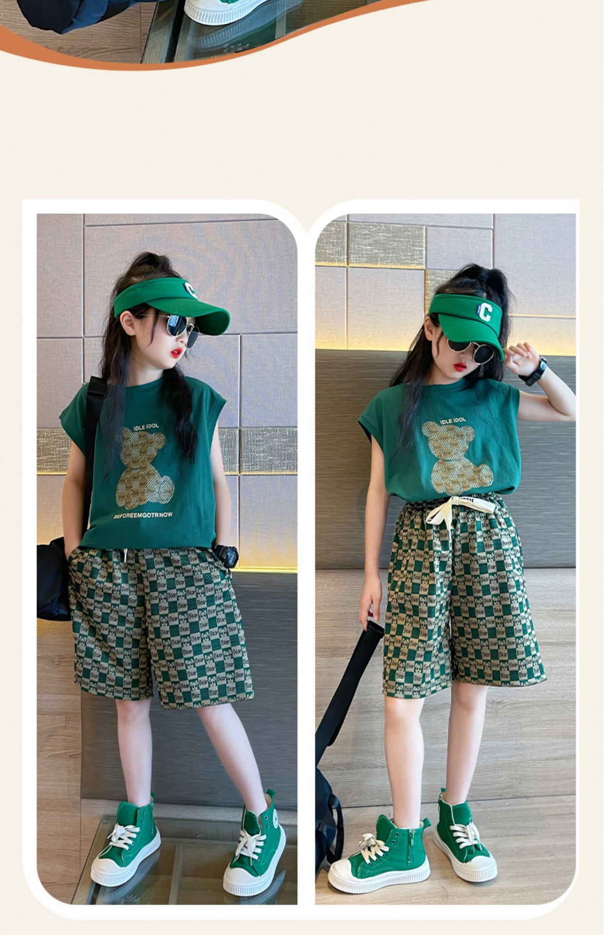 여아 여름 조끼 5부 바지 투피스 세트 2025 새로운 스타일 중대형 아동 민소매 조끼 티셔츠 바지 정장 유행스토어 가기