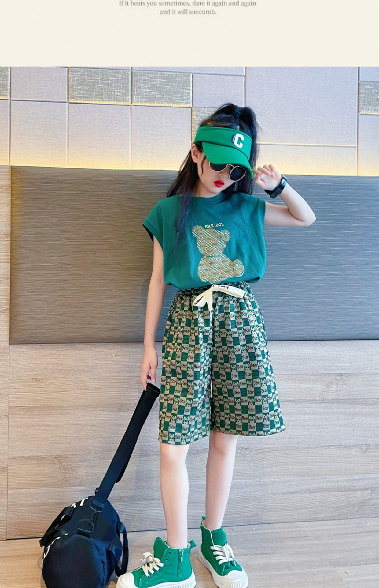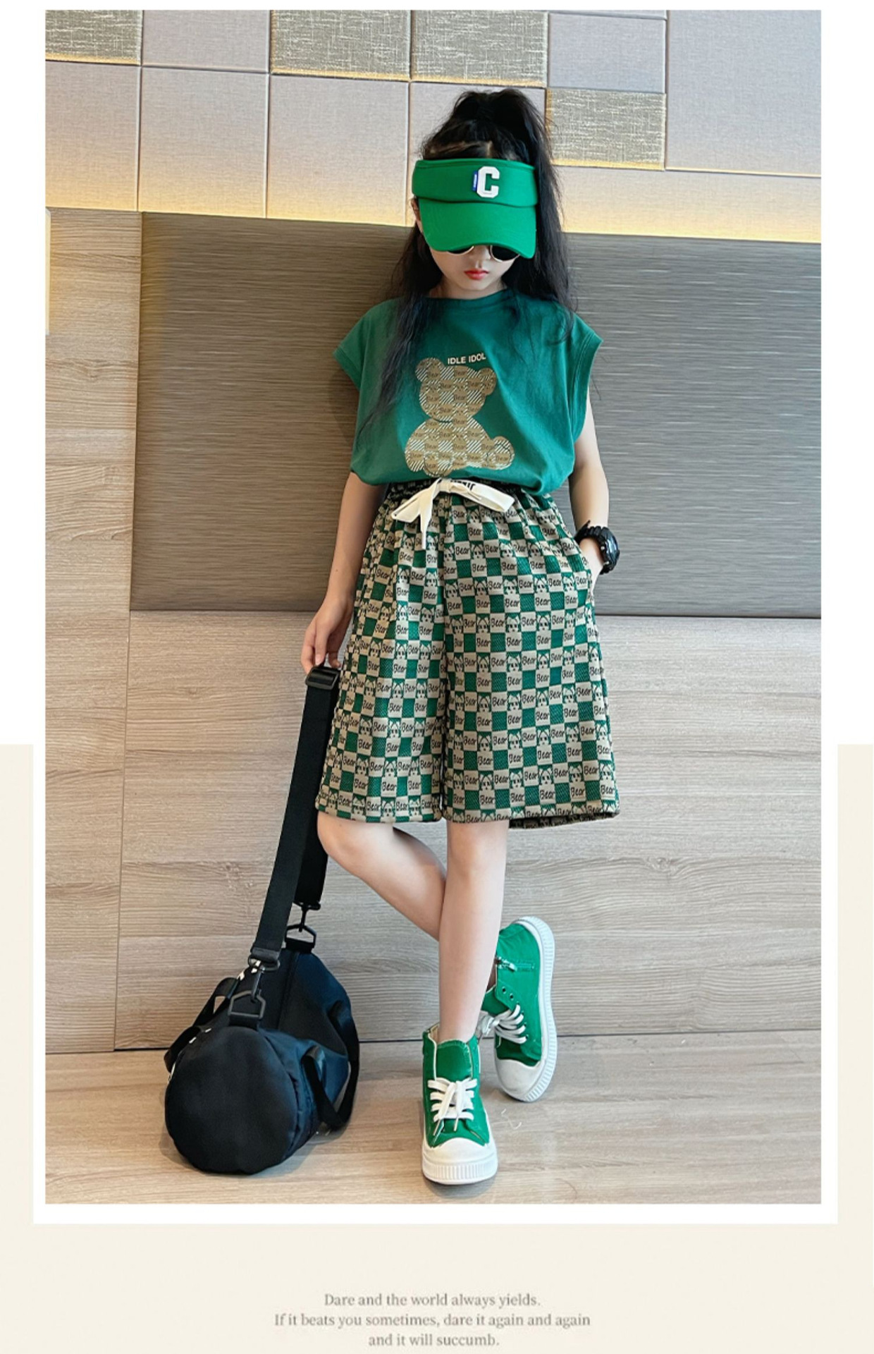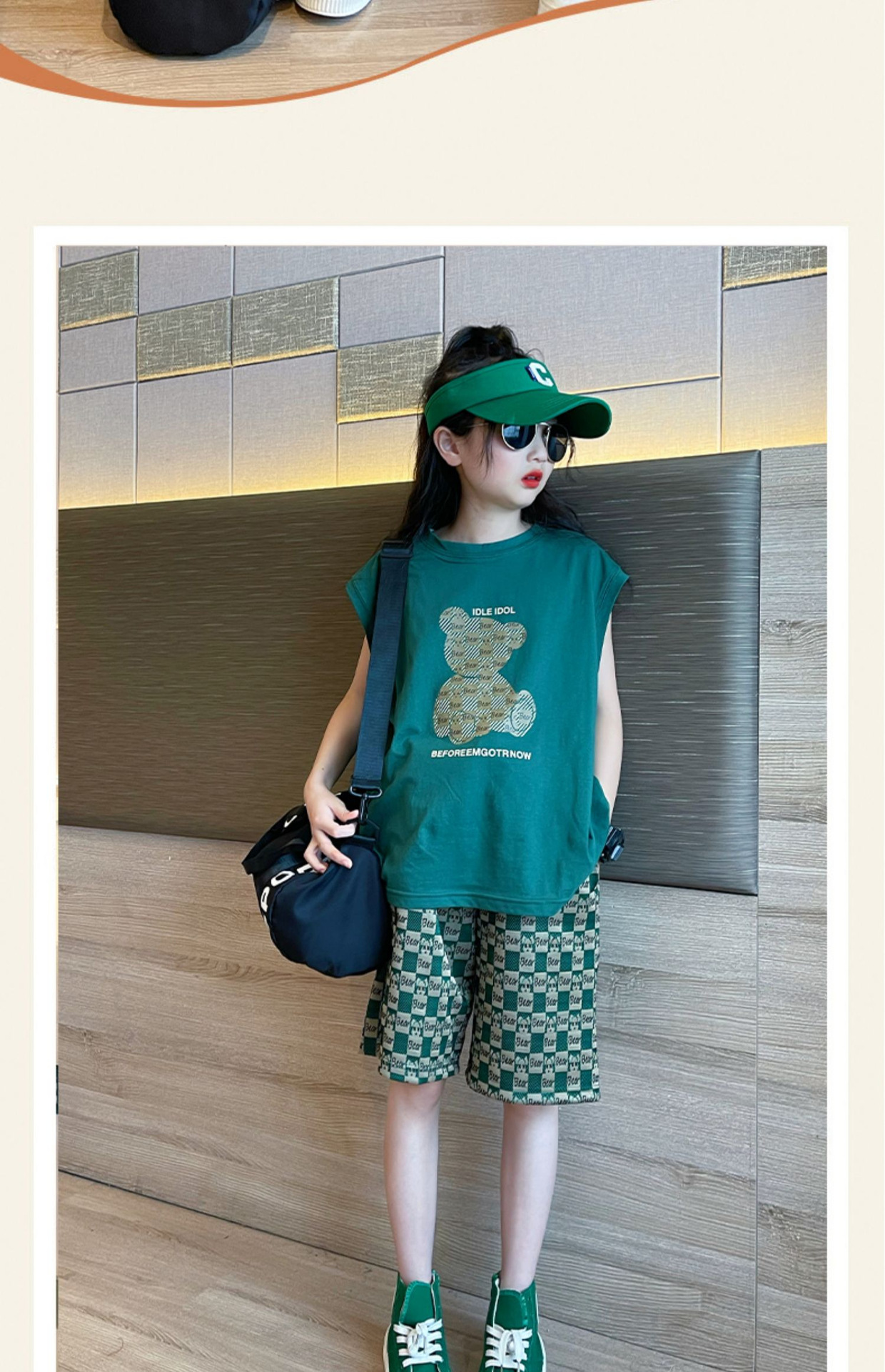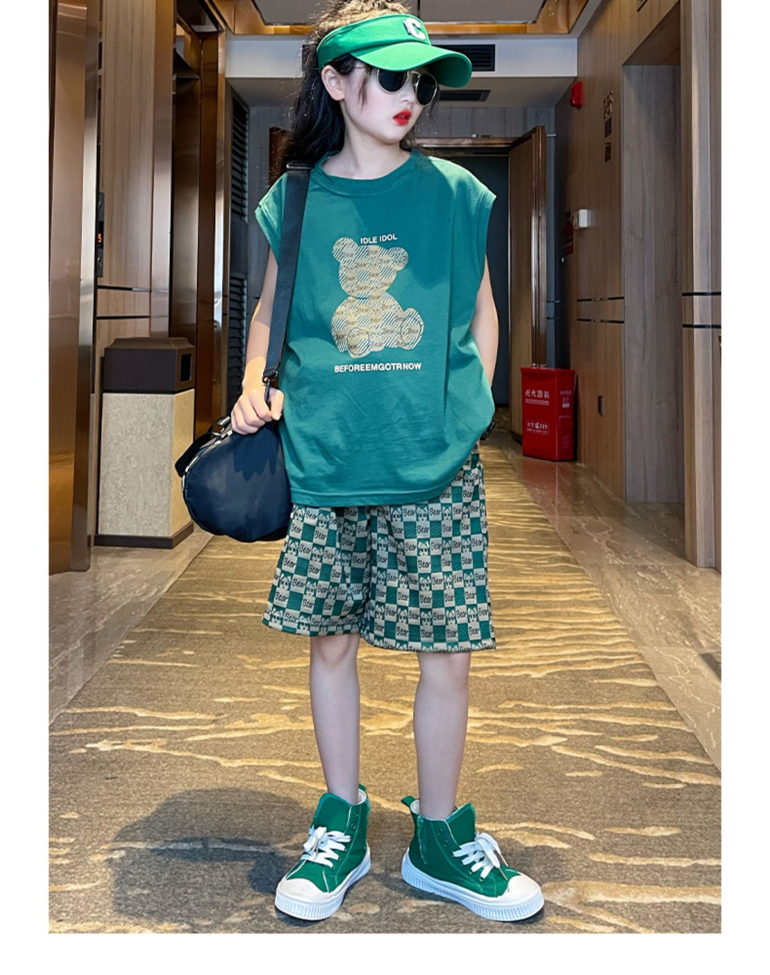 여아 여름 조끼 5부 바지 투피스 세트 2025 새로운 스타일 중대형 아동 민소매 조끼 티셔츠 바지 정장 유행스토어 가기