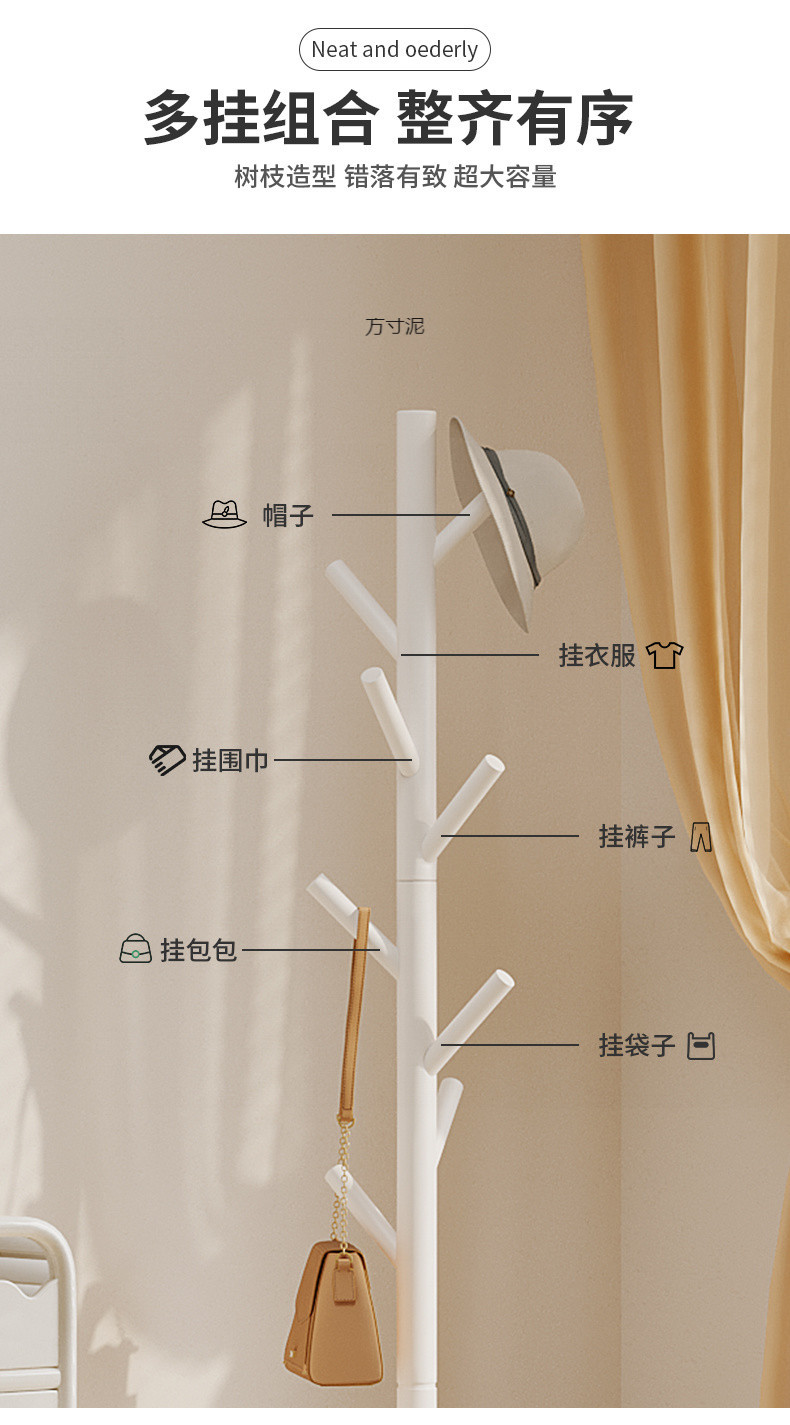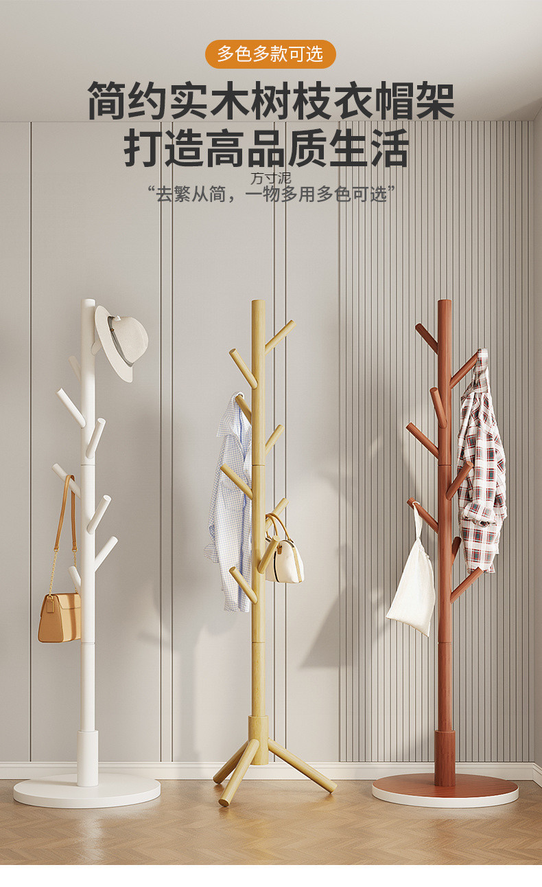 단단한 나무 옷걸이 바닥 옷걸이 거실 사무실 침실 머리맡 기숙사 홈 수직 옷걸이