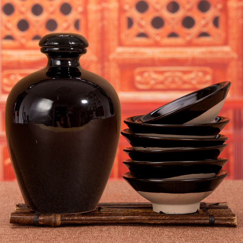 작은 검은색 복고풍 세라믹 와인 그릇, 와인 그릇, 주전자, 버클 그릇, 고대 골동품 그릇 세트, 흙 그릇, 구식 물고기 가구스토어 가기