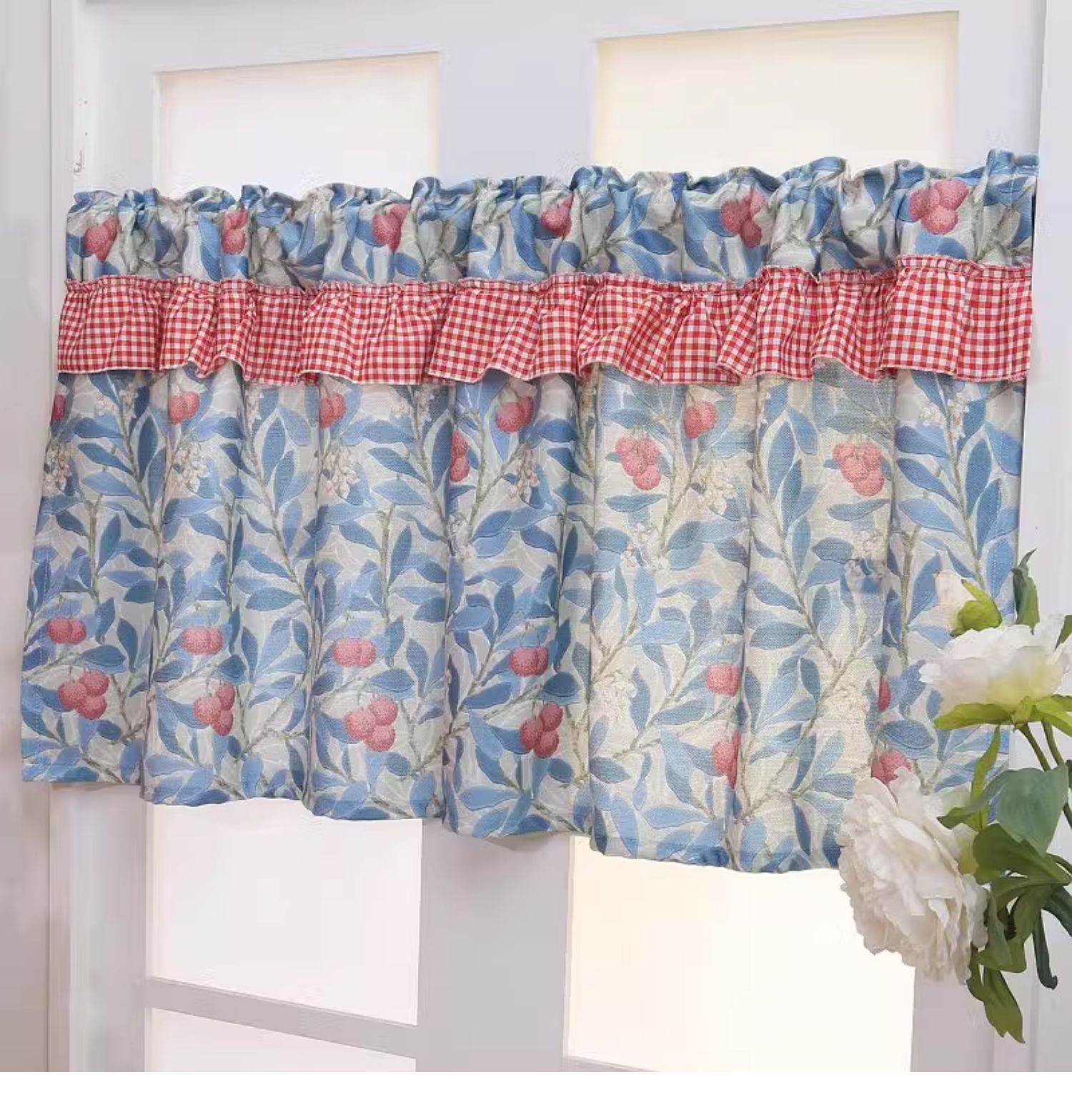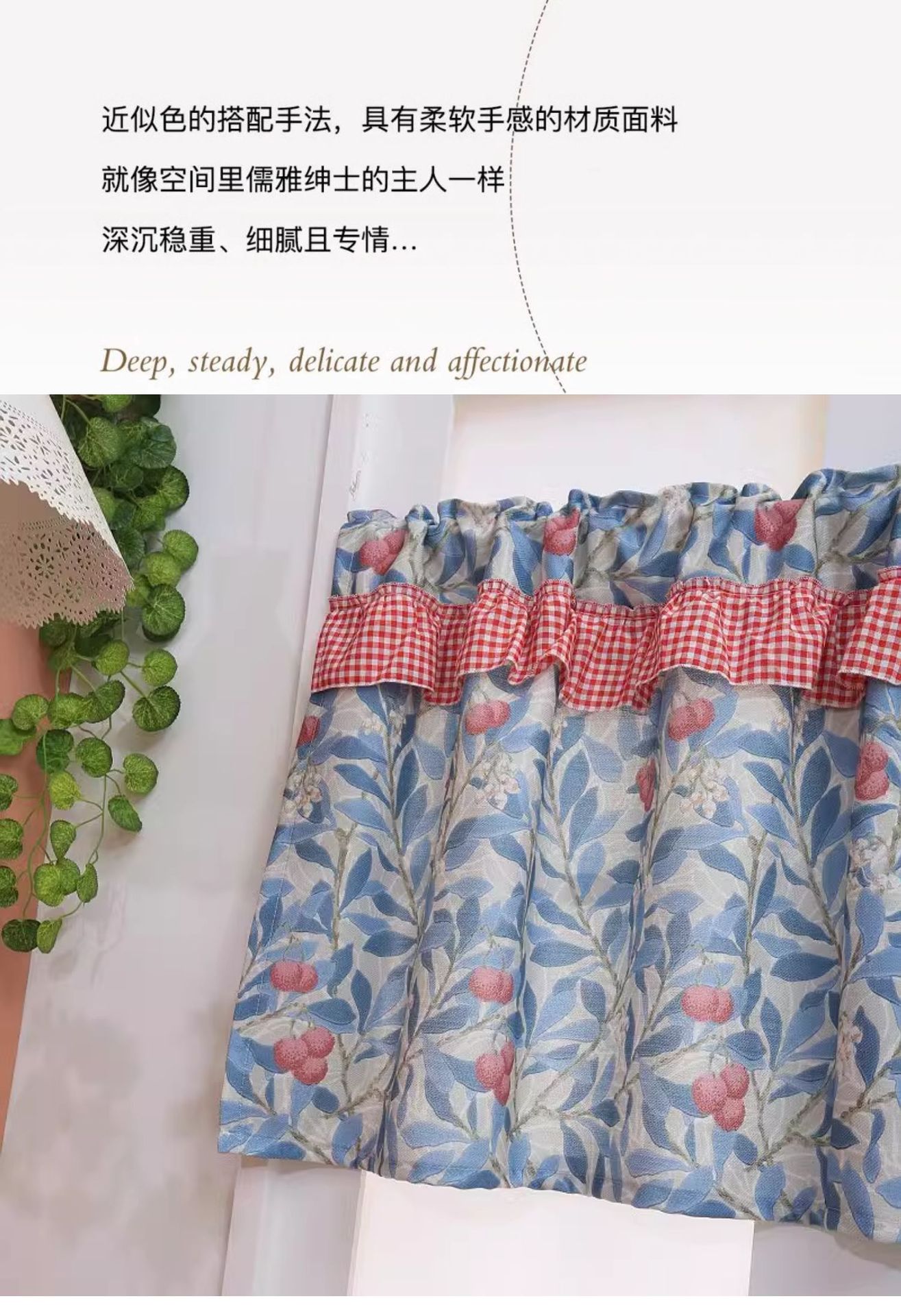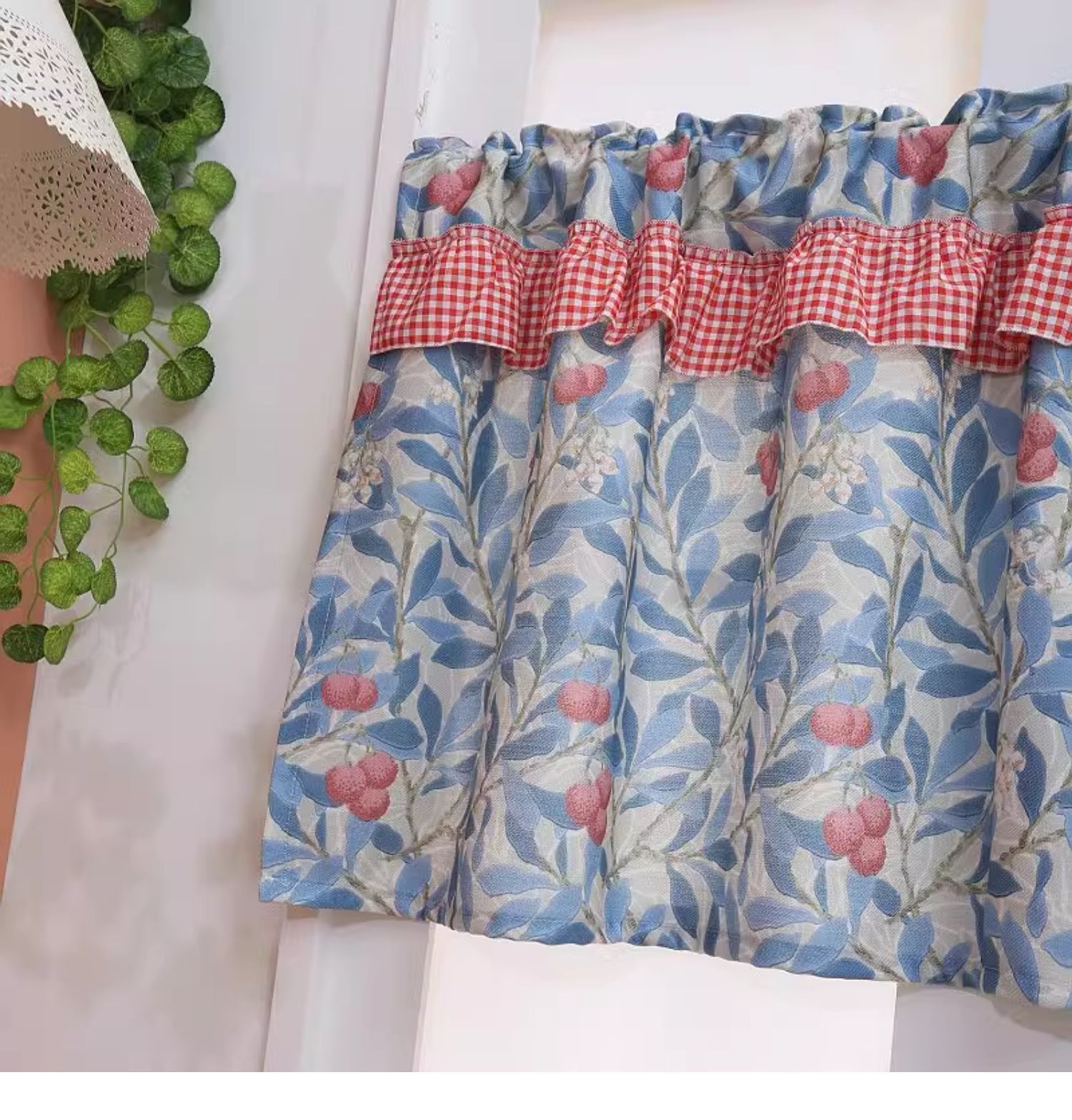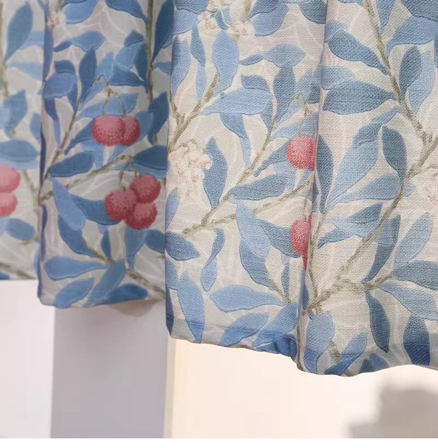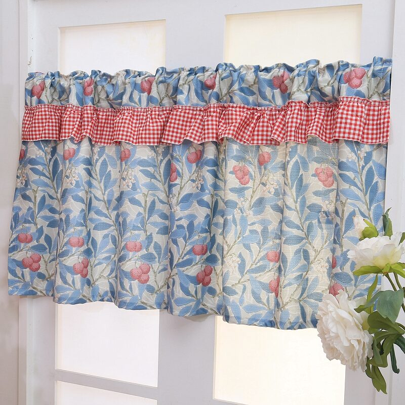 파란색 오리지널 패브릭 작은 커튼, 펀치 없는 반커튼, 짧은 커튼, 심플한 캐비닛 커튼, 복고풍 반커튼, 짧은 커튼스토어 가기