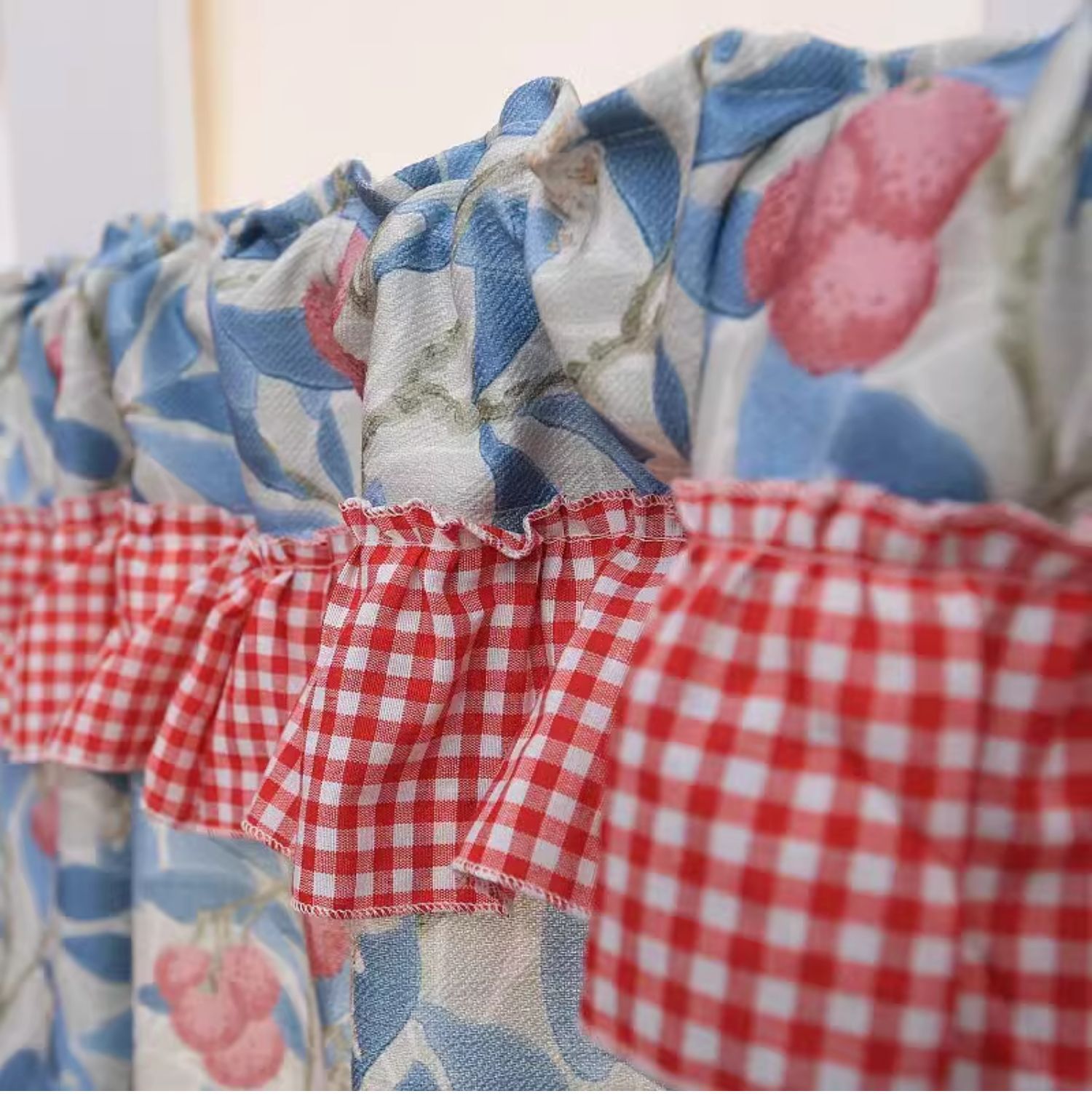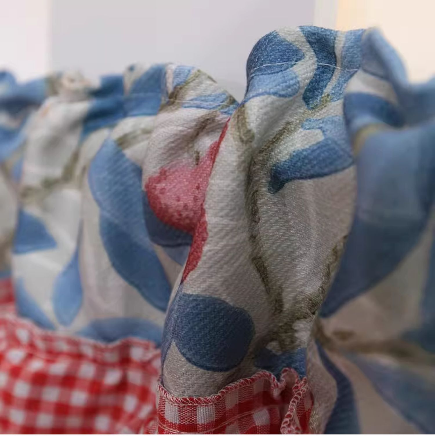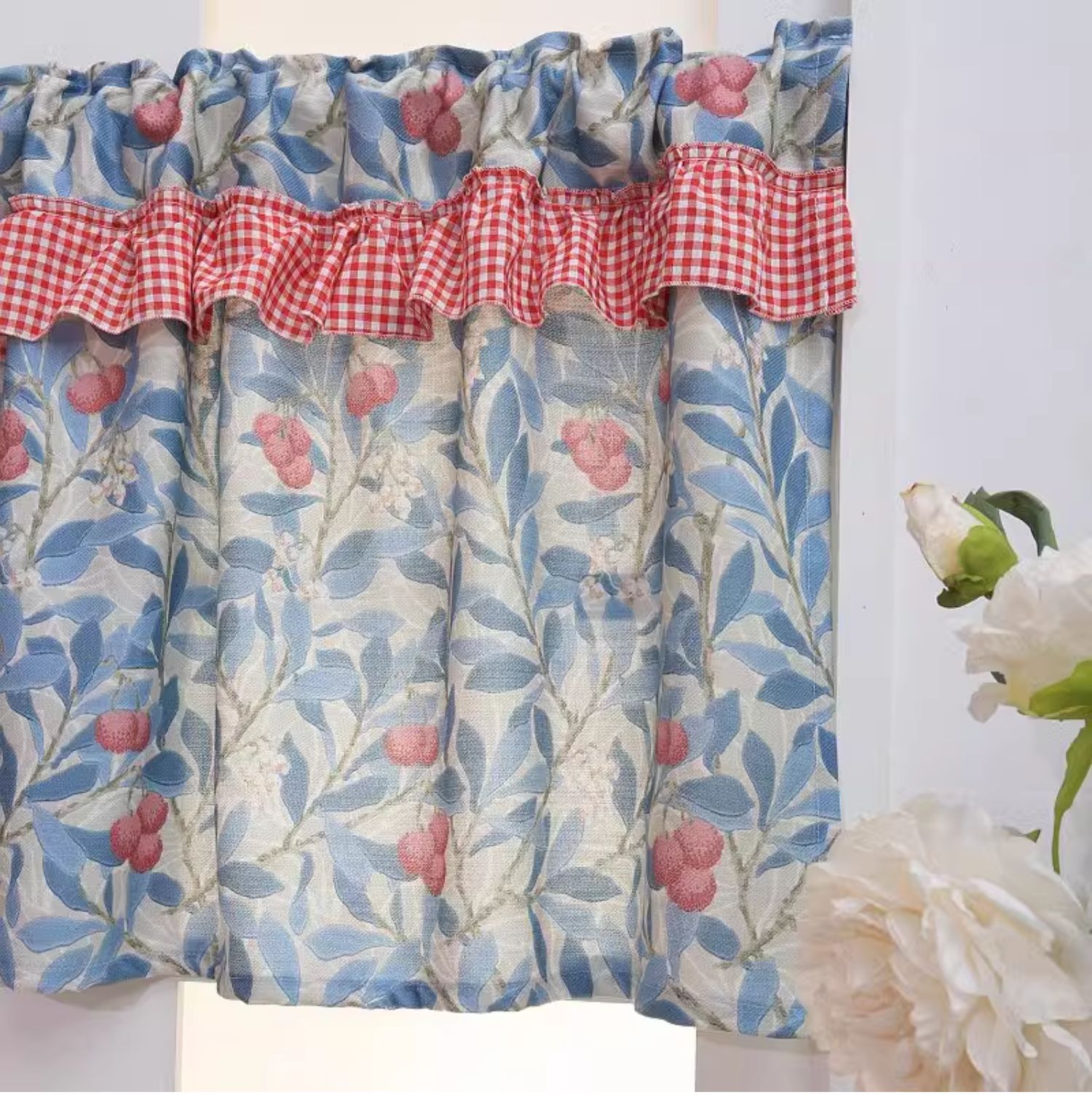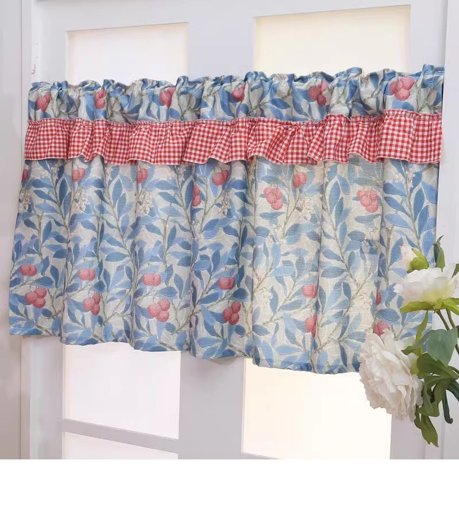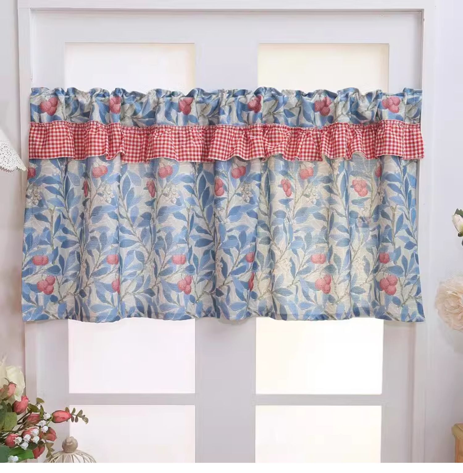파란색 오리지널 패브릭 작은 커튼, 펀치 없는 반커튼, 짧은 커튼, 심플한 캐비닛 커튼, 복고풍 반커튼, 짧은 커튼스토어 가기