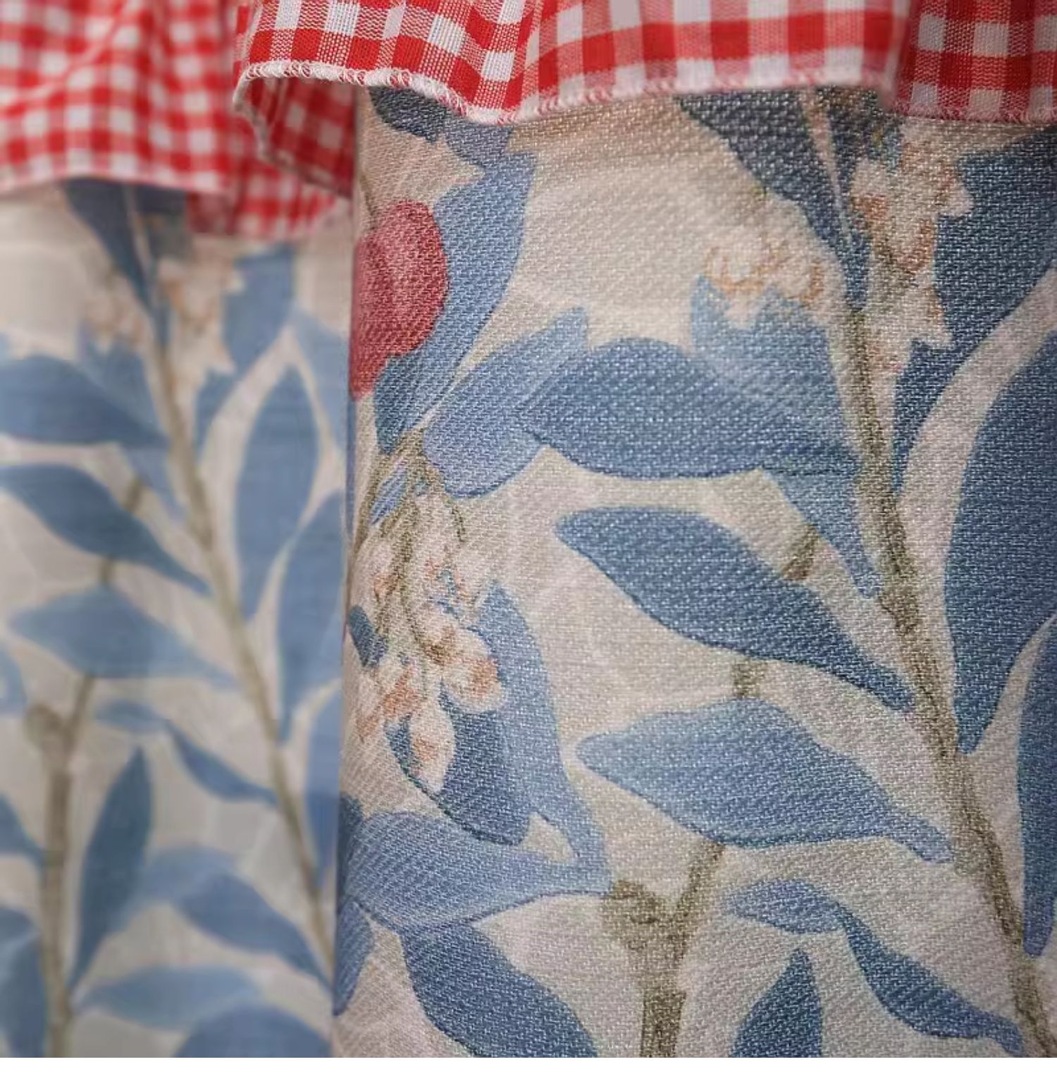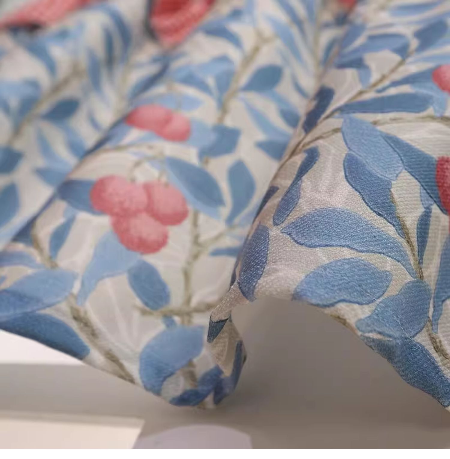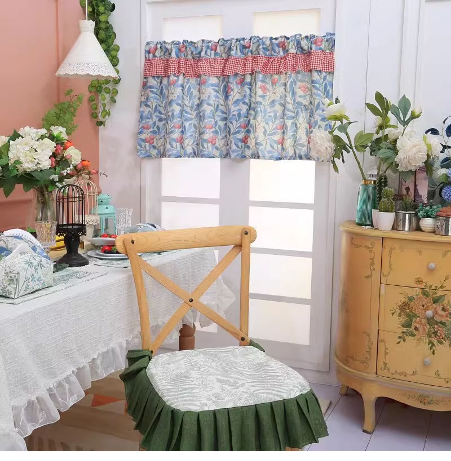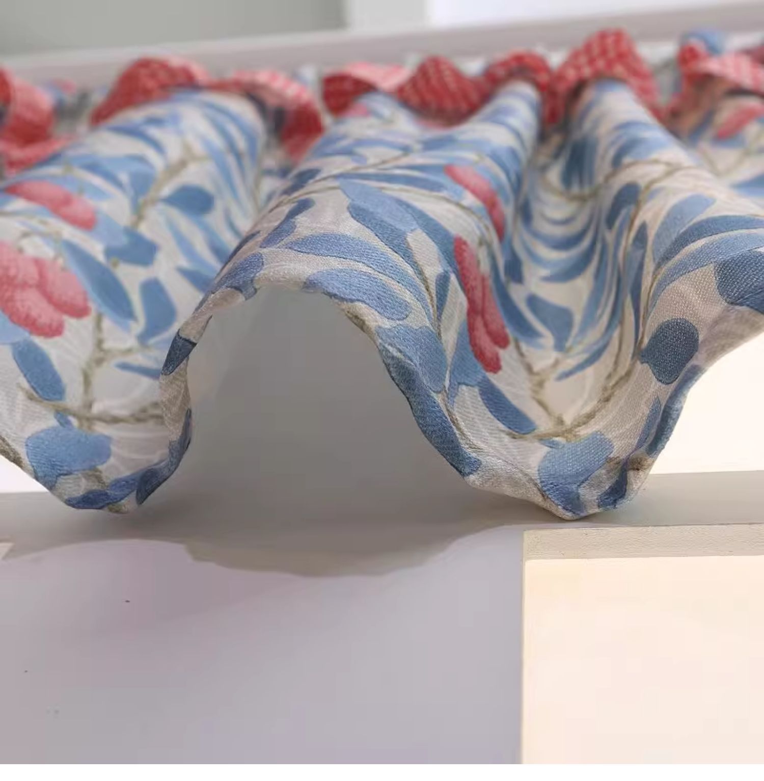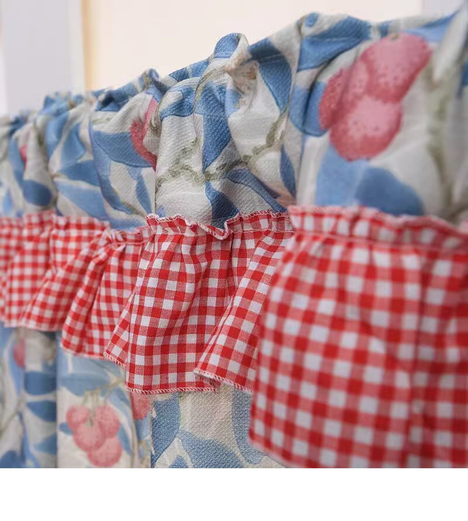 파란색 오리지널 패브릭 작은 커튼, 펀치 없는 반커튼, 짧은 커튼, 심플한 캐비닛 커튼, 복고풍 반커튼, 짧은 커튼스토어 가기