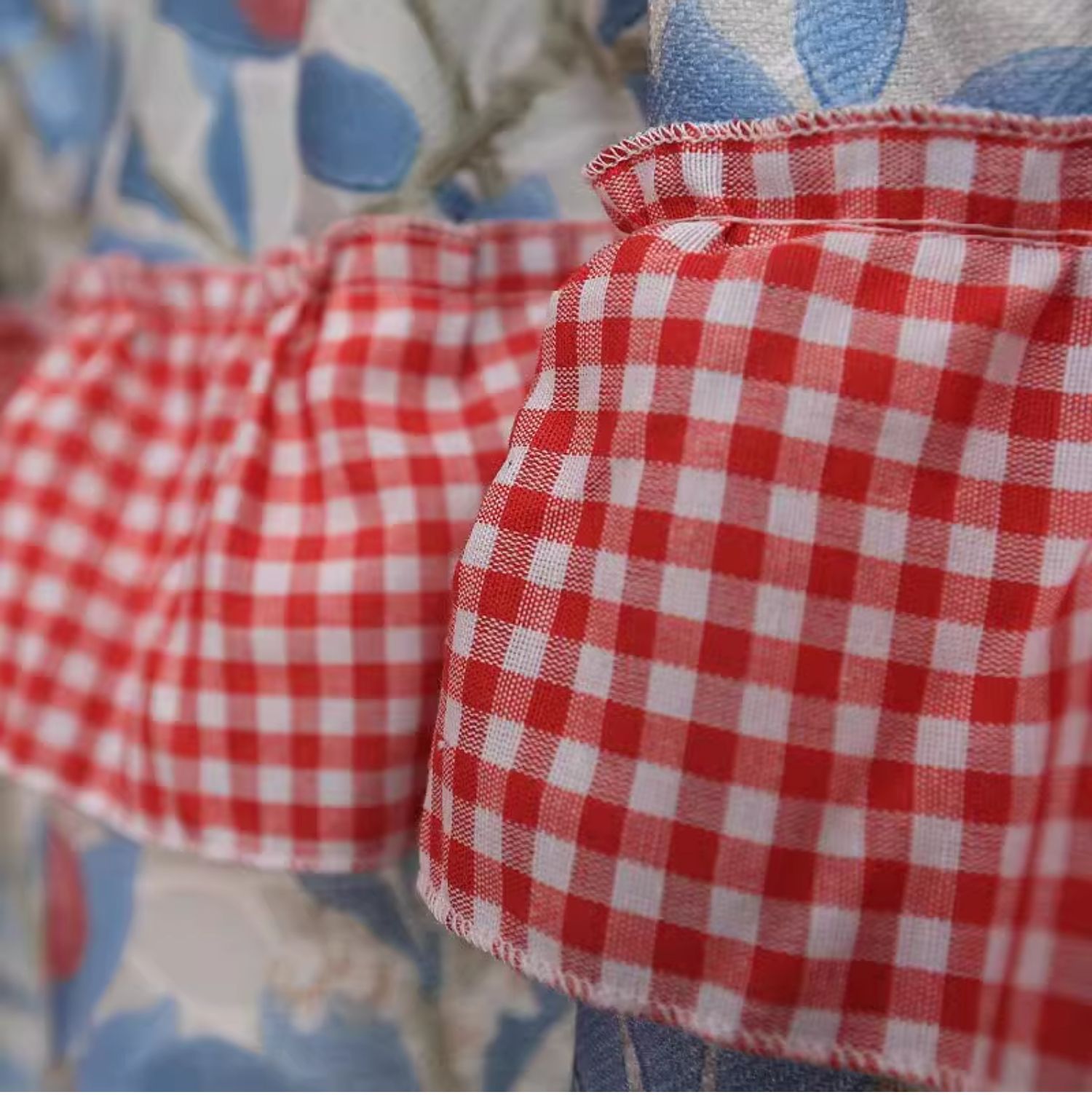 • 열매를 맺다 - 빨간색 작은 격자 주름 장식