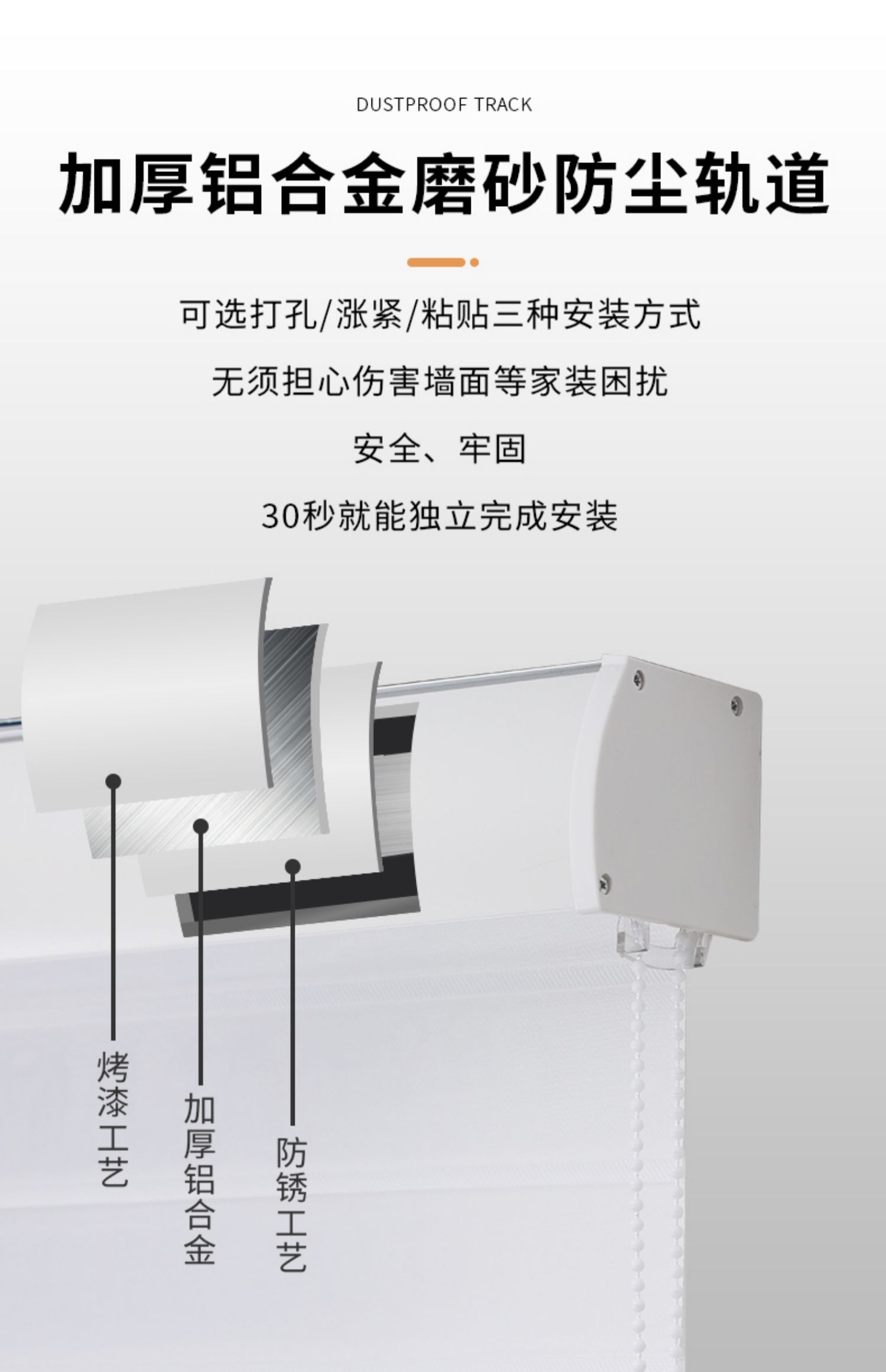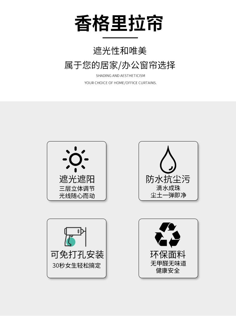 전기 샹그릴라 커튼 리프팅 롤러 블라인드 침실 사무실 주방 빛 차단 펀치없는 차양 블라인드