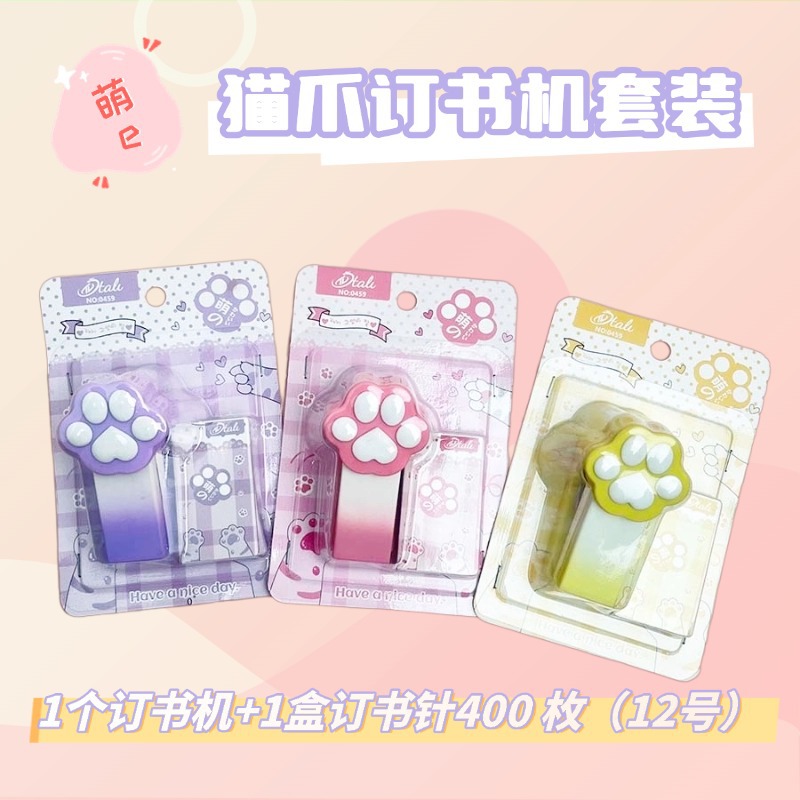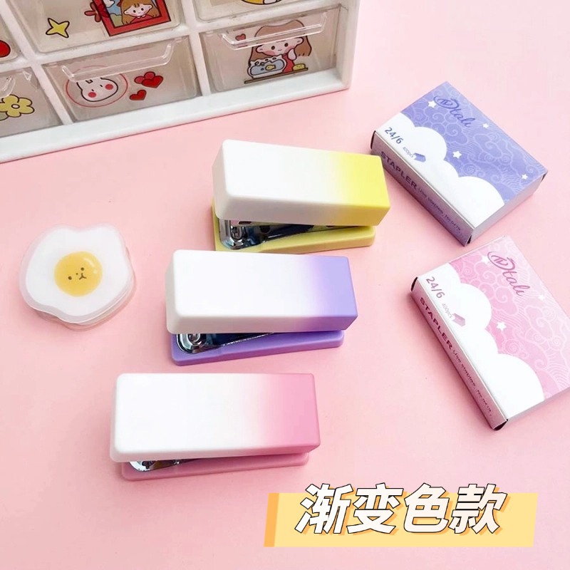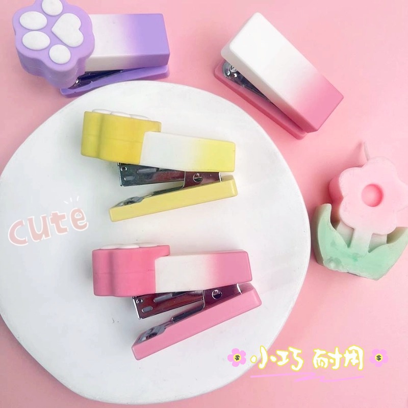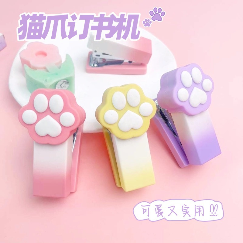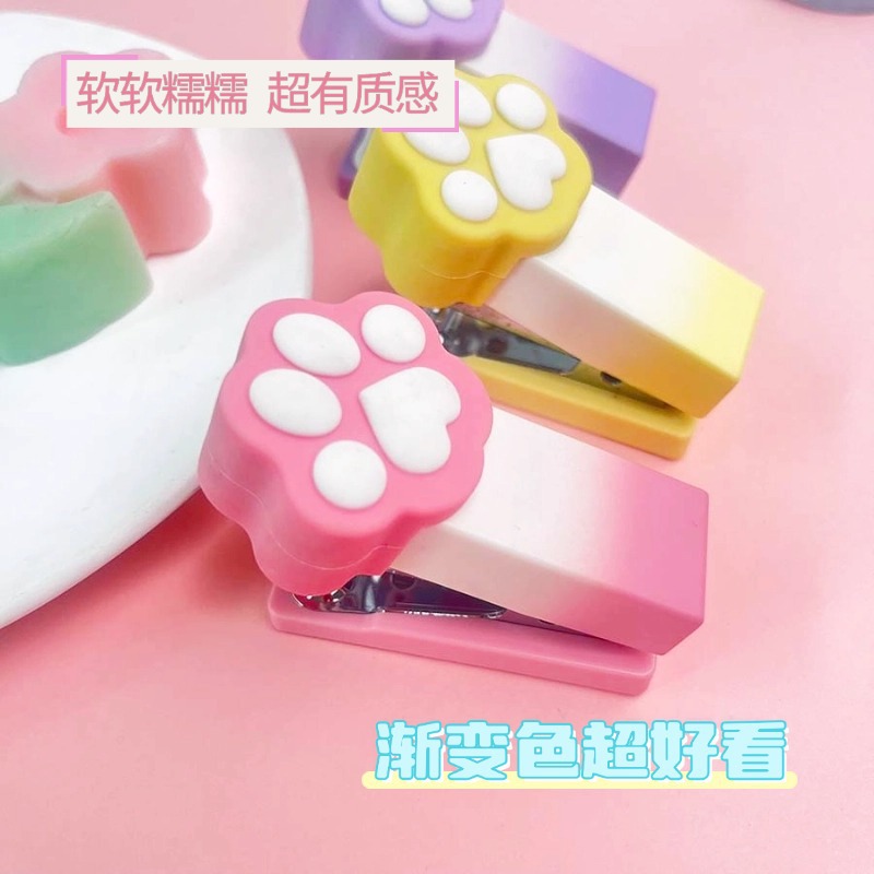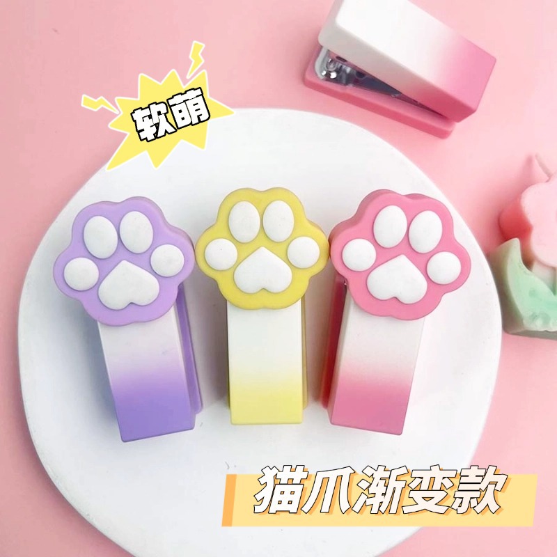 그라디언트 색상 고양이 발톱 미니 스테이플러 세트 학생 귀여운 바인더 사무실 휴대용 휴대용 스테이플러스토어 가기