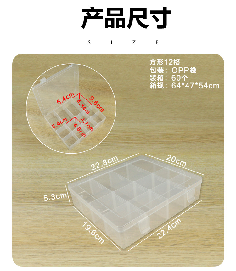 탈착식 12칸 투명 플라스틱 보관 상자, 낚시 장비, 보석, 하드웨어 도구, DIY 구슬 부품 정리 상자스토어 가기