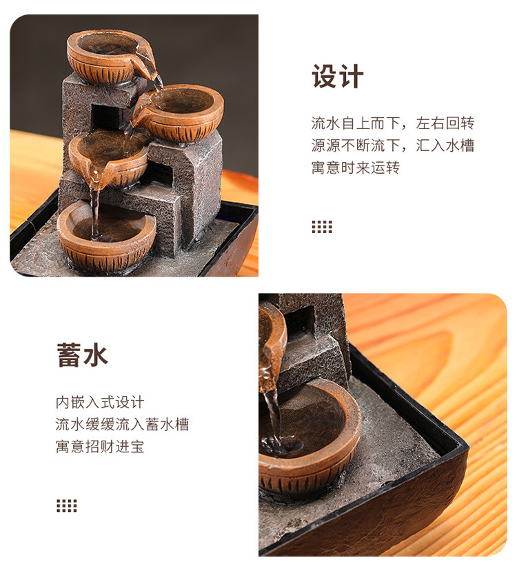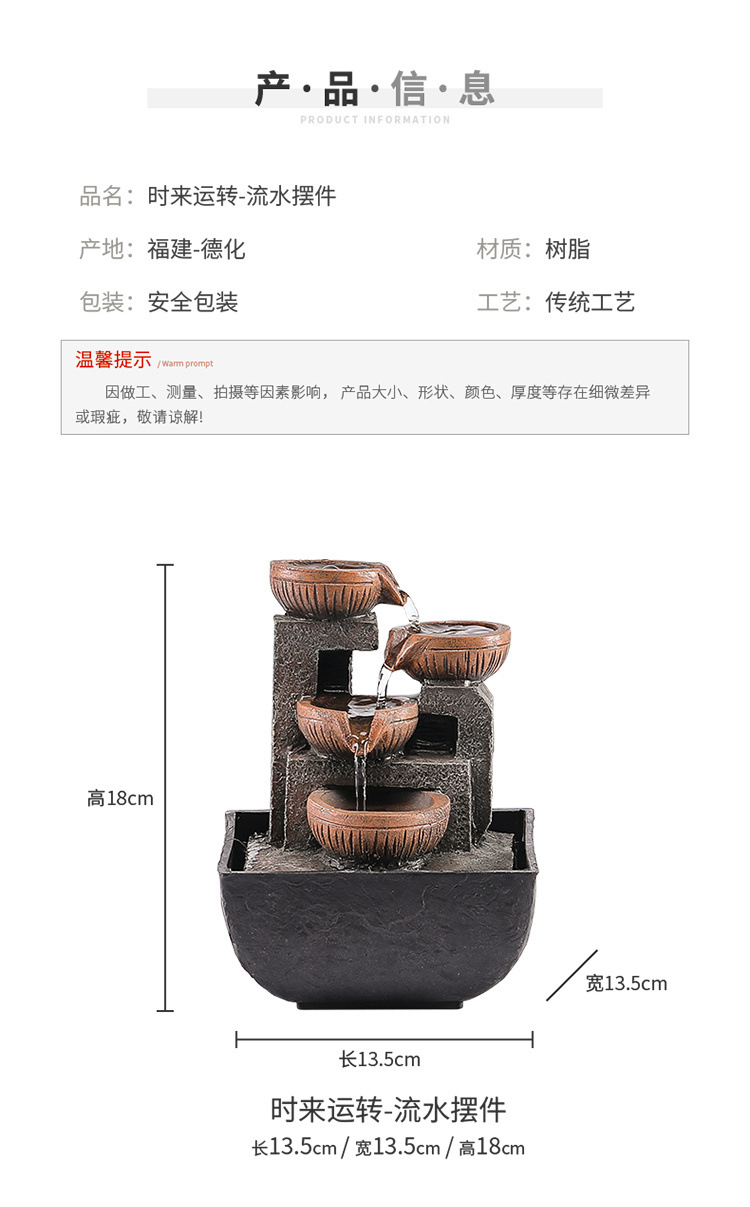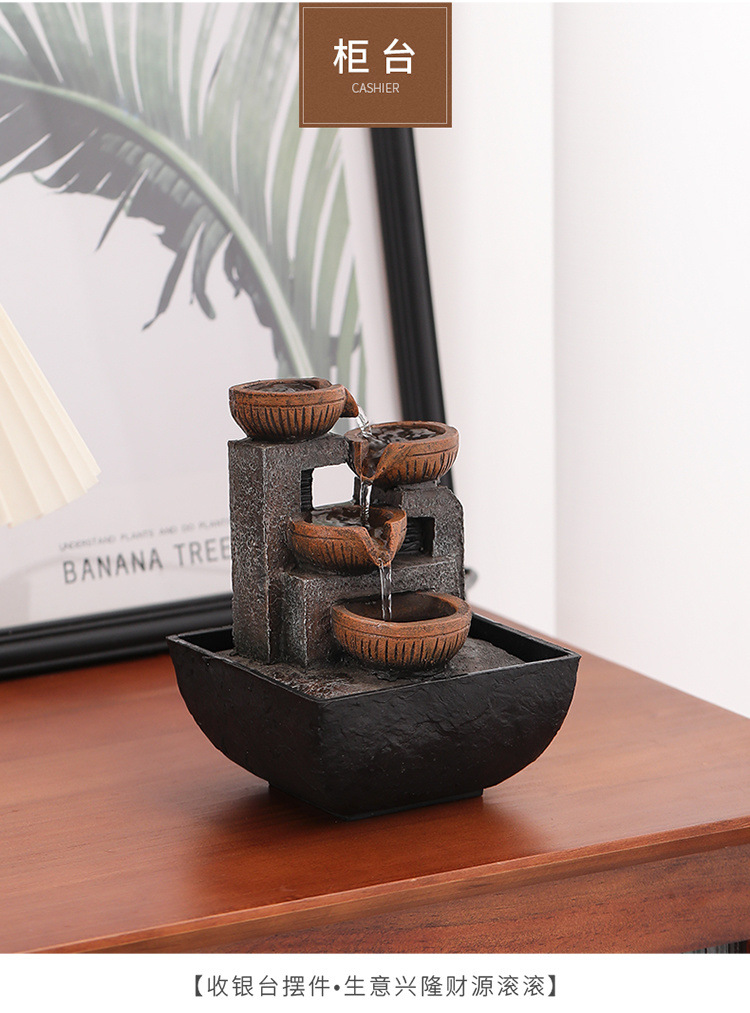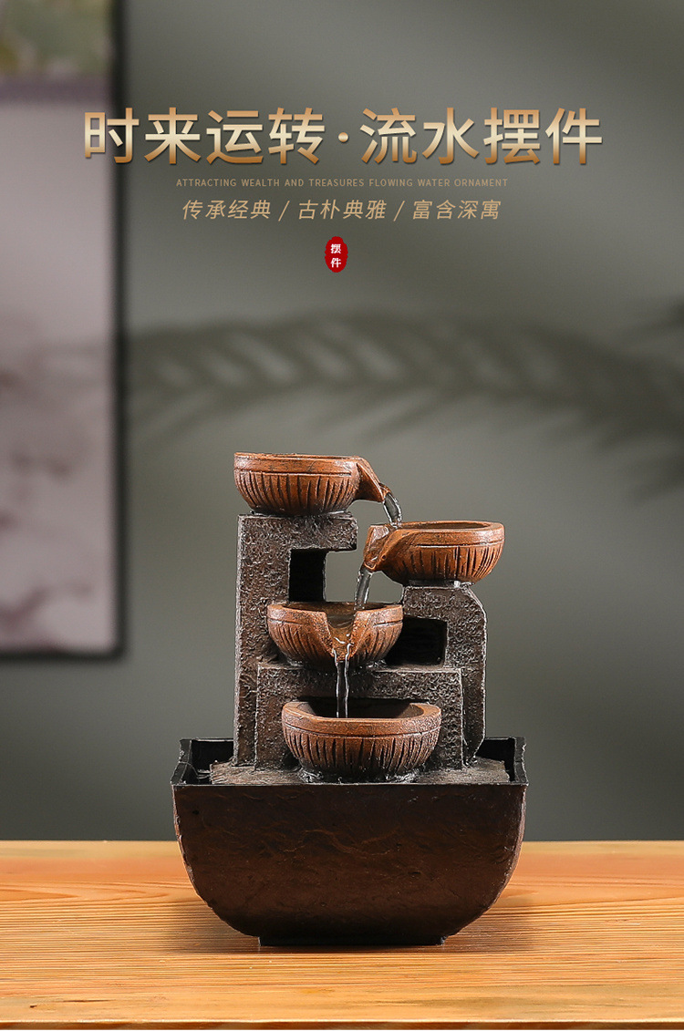 Xintianquan 행운의 자동 흐르는 물 장식품 순환 물 중국식 커피 테이블 사무실 데스크탑 작은 장식품 거실 홈