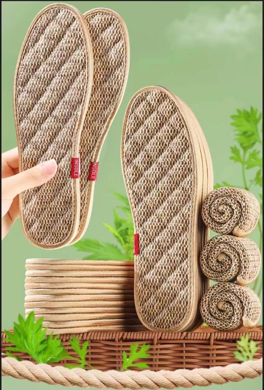 本链接的棉麻鞋垫实物不带红色腰签