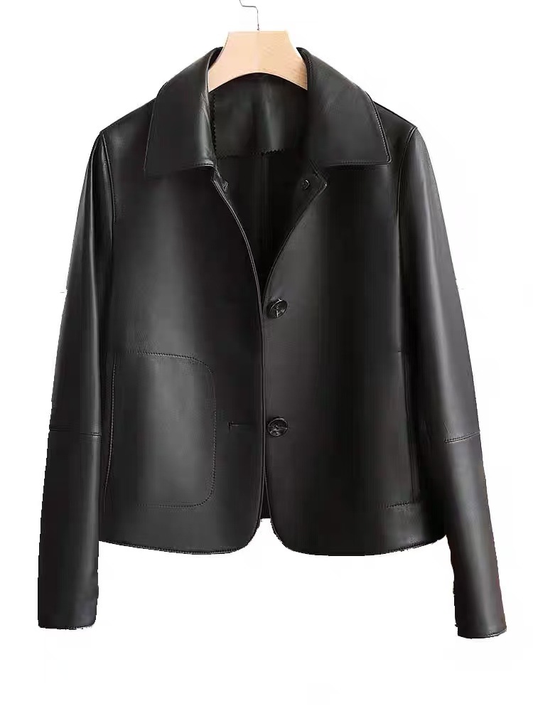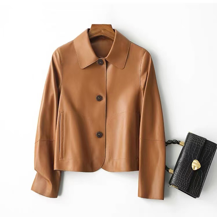 스타 Qi Wei와 같은 스타일 2025 봄, 가을 신상 여성 가죽 자켓 여성 짧은 스타일 심플 슬림 자켓스토어 가기