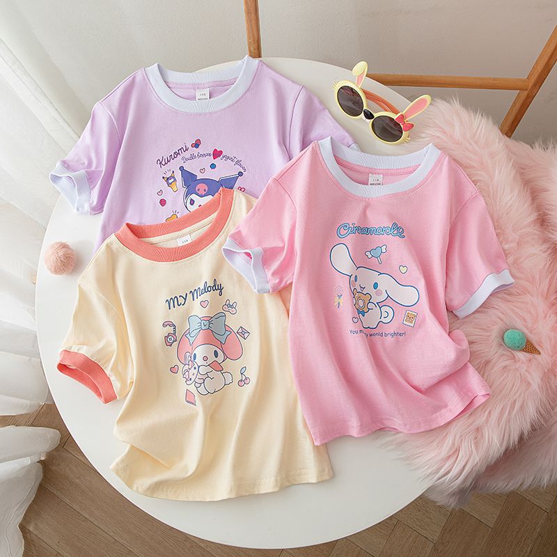 여자 반팔 티셔츠 여름 2025 새로운 어린이 만화 쿠로미 탑 멜로디 캐주얼 티셔츠 트렌디 t스토어 가기