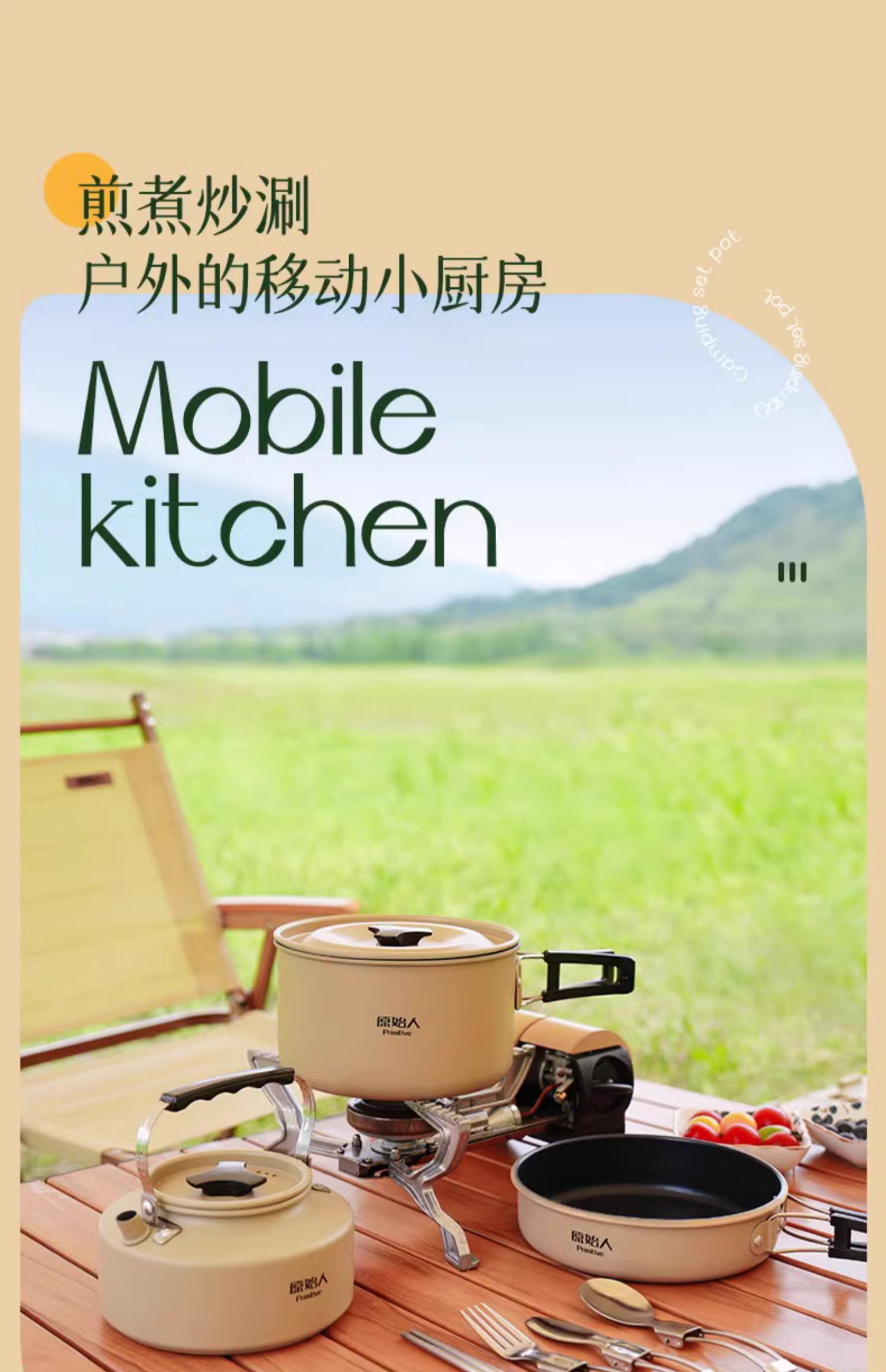 원시인 야외 주전자, 캠핑용 차 끓이기 스토브, 차를 끓이는 특수 카세트 스토브, 차 세트, 휴대용 냄비, 스토브, 조리기구