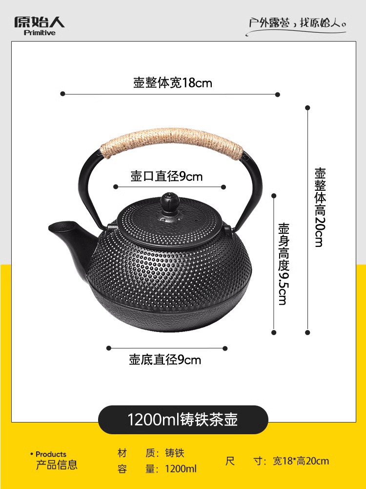 원시인 야외 주전자, 캠핑용 차 끓이기 스토브, 차를 끓이는 특수 카세트 스토브, 차 세트, 휴대용 냄비, 스토브, 조리기구스토어 가기