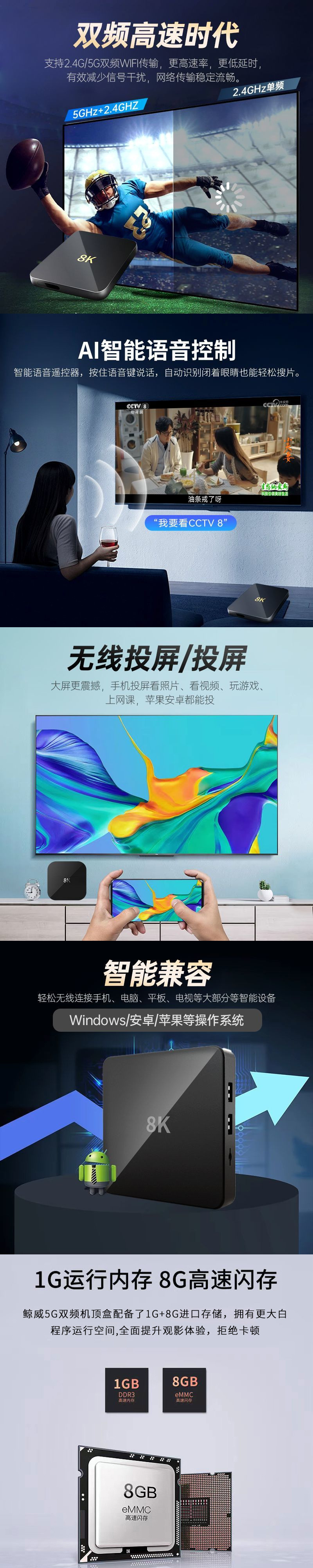• 5G 듀얼 밴드 블루투스 울트라 클리어 8K [음성 원격 제어] 무료 액세서리