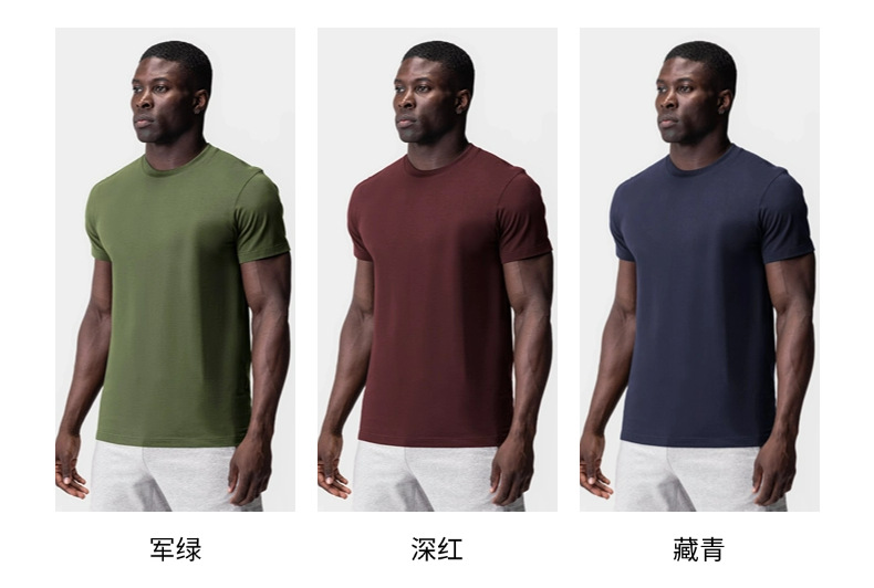 국경 간 여름 유럽과 미국 슬림 스포츠 피트니스 반팔 남성용 얼음 느낌 면 폴리 에스터 탄성 흡습 라운드 넥 티셔츠스토어 가기