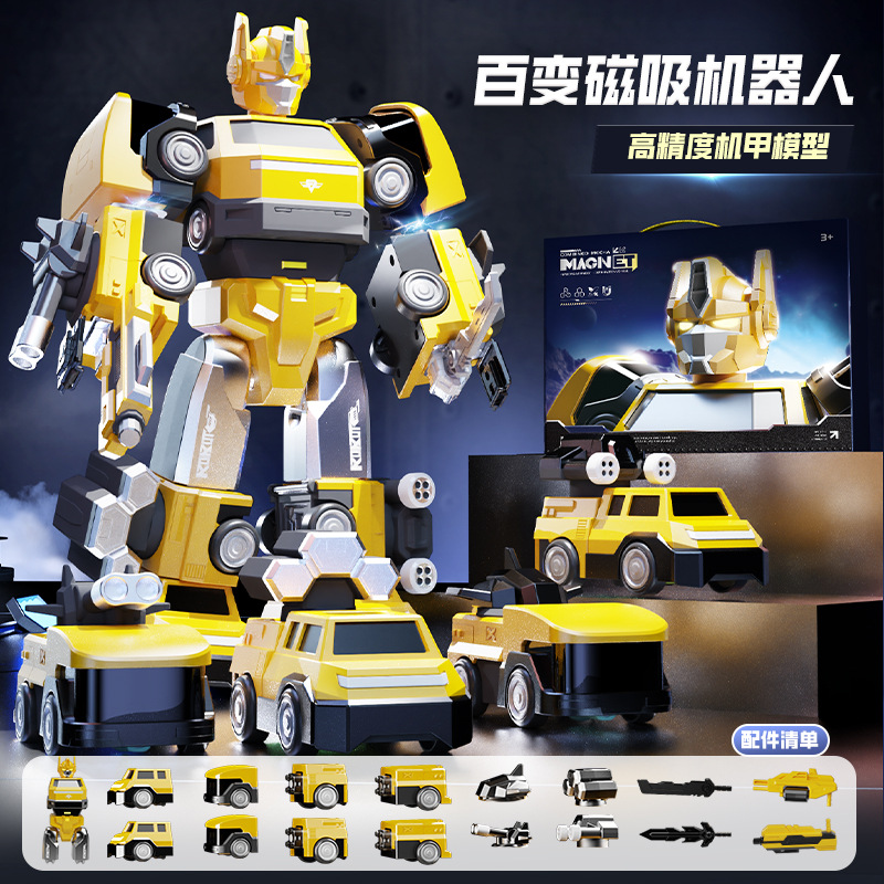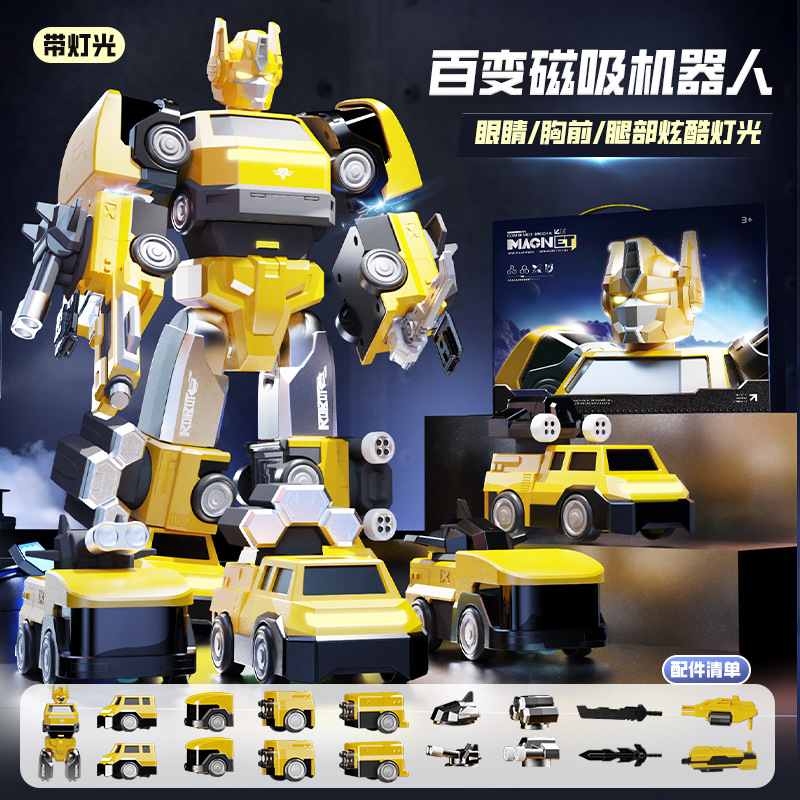 다양한 자기 접합 및 다중 놀이 방법을 갖춘 국경 간 어린이 장난감 소년 생일 세트 자기 로봇 변형