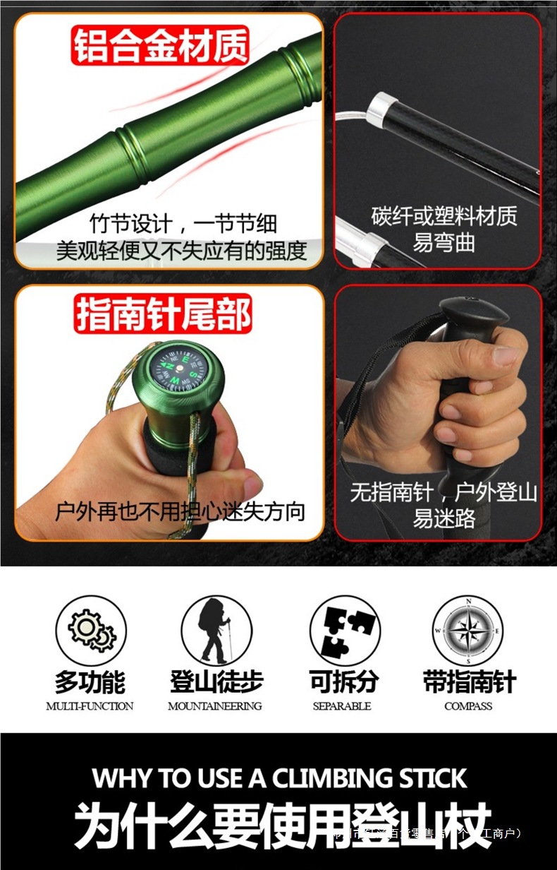 Yuhan 알루미늄 합금 야외 하이킹 스틱 접이식 다기능 텔레스코픽 자기 방어 스틱 휴대용 칼 전문 장비스토어 가기