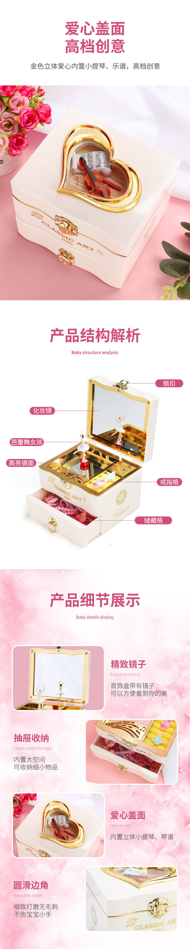 뮤직 박스 뮤직 박스 회전 어린 소녀 춤추는 공주 발레 팔찌 보관 보석 상자 어린이 생일 선물