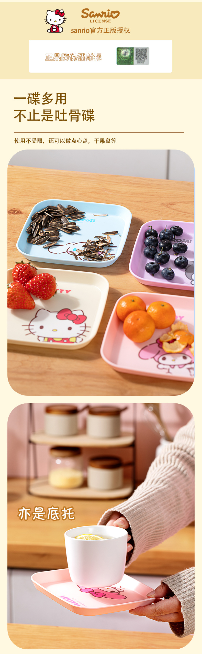 산리오 정품 뼈받침 접시 가정용 만화 캐릭터 접시 귀여운 과일 접시 거실 쓰레기통