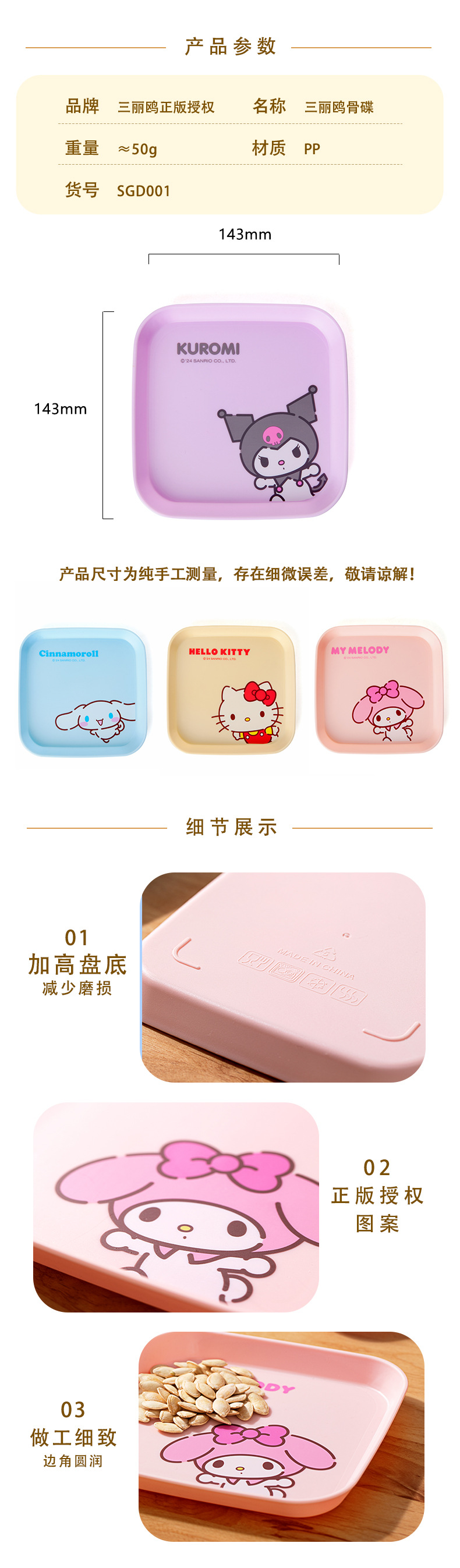산리오 정품 뼈받침 접시 가정용 만화 캐릭터 접시 귀여운 과일 접시 거실 쓰레기통스토어 가기