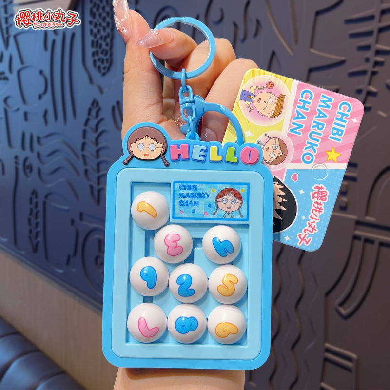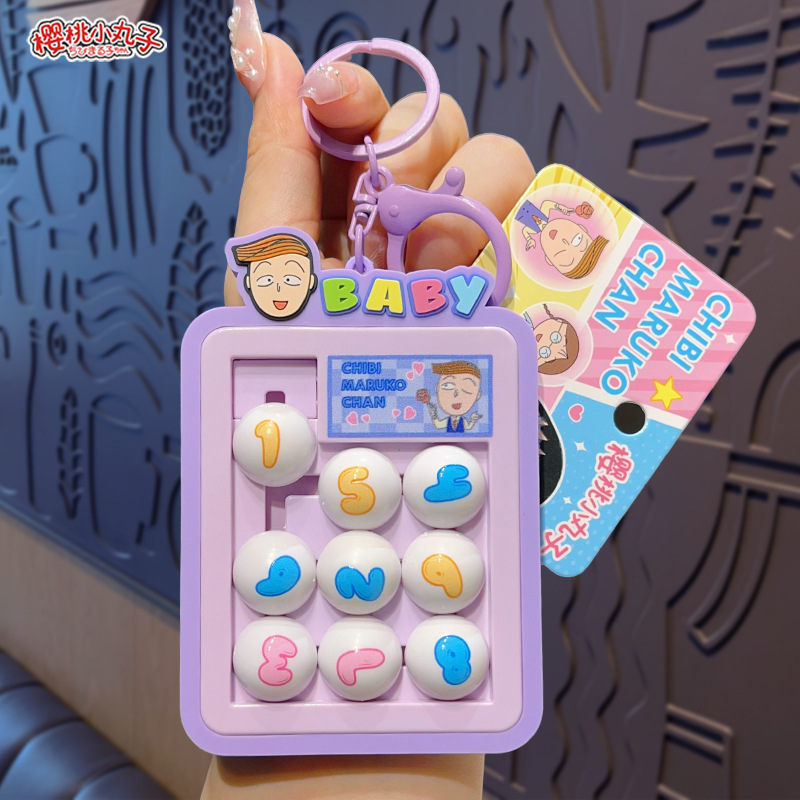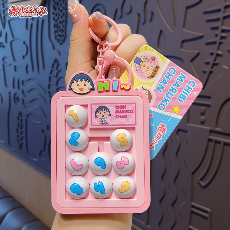 정품 Chibi Maruko-chan 디지털 Huarongdao 키 체인 크리 에이 티브 귀여운 만화 학생 가방 펜던트 작은 선물