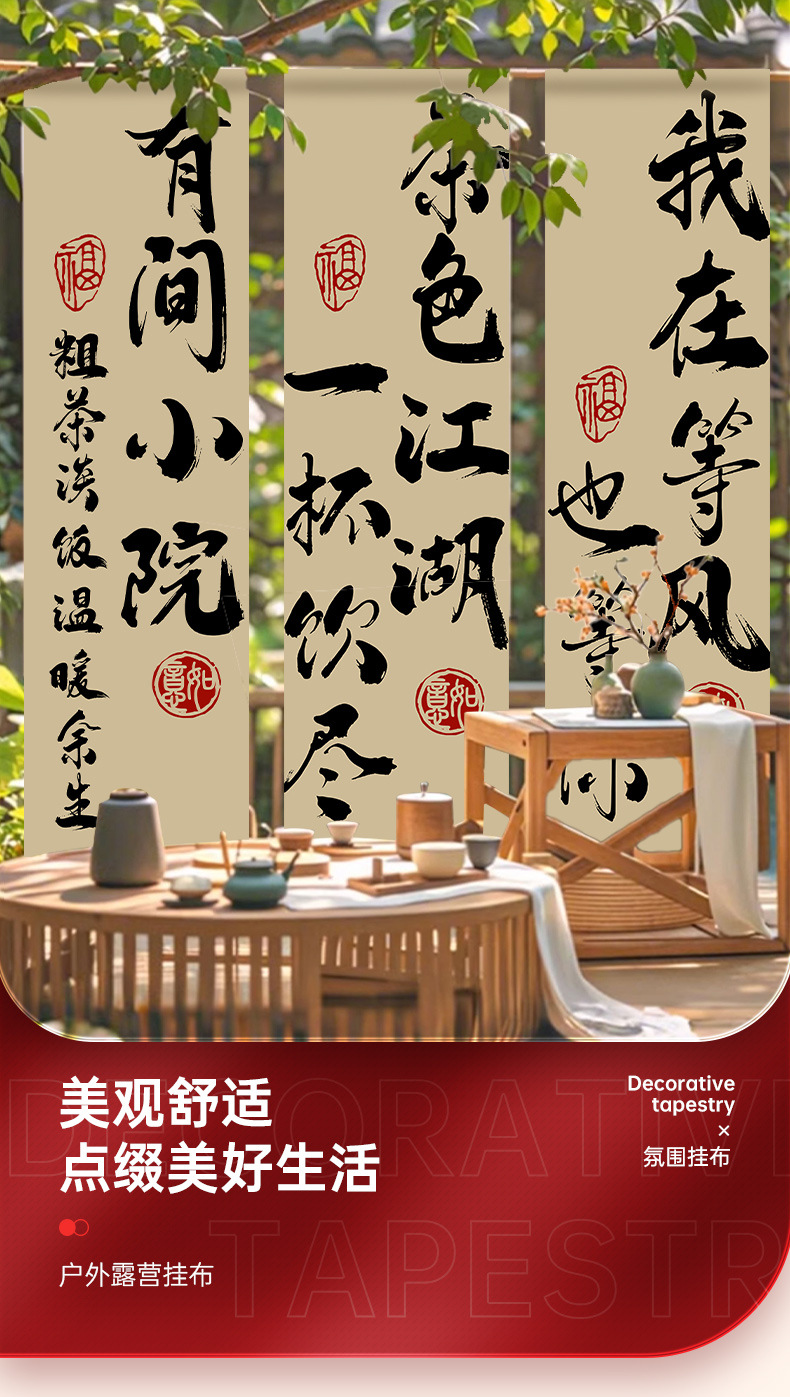 요리 차 매달려 천 야외 캠핑 장면 레이아웃 분위기 배경 벽 장식 그물 붉은 사진 펀치 소품