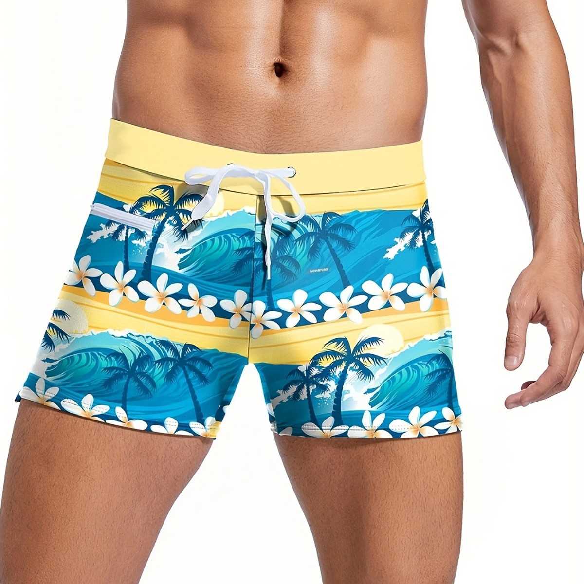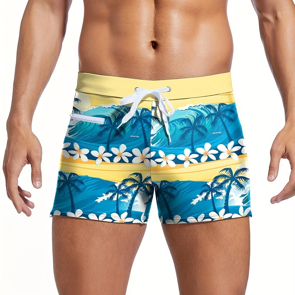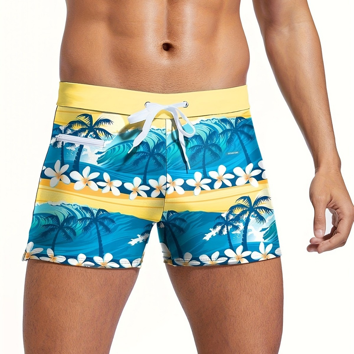 AliExpress 국경 간 대외 무역 새로운 하와이 코코넛 나무 프린트 지퍼 로프 캐주얼 타이트 사각형 수영 스팟스토어 가기