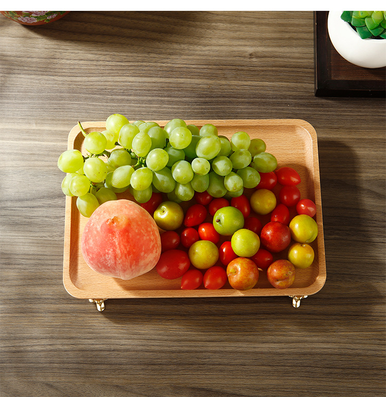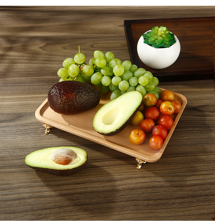 나무 과일 접시 거실 홈 스토리지 트레이 과자 과일 차 스낵 스낵 접시 금속 발 단단한 나무 과일 접시