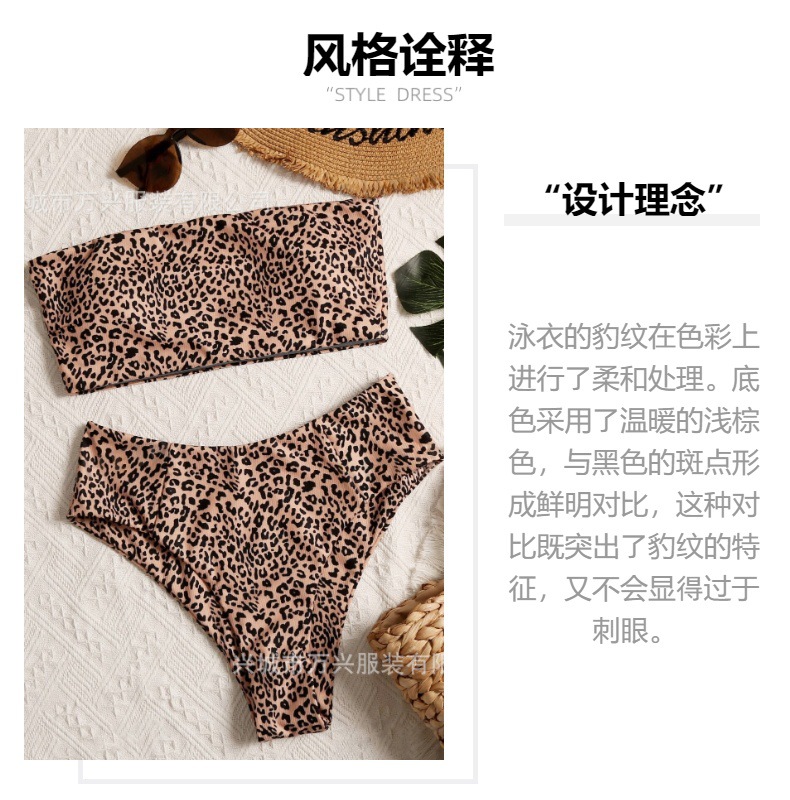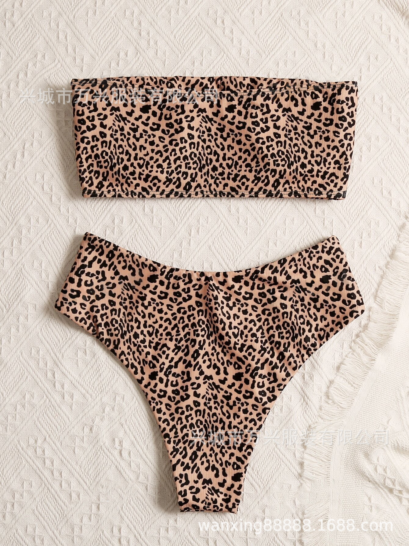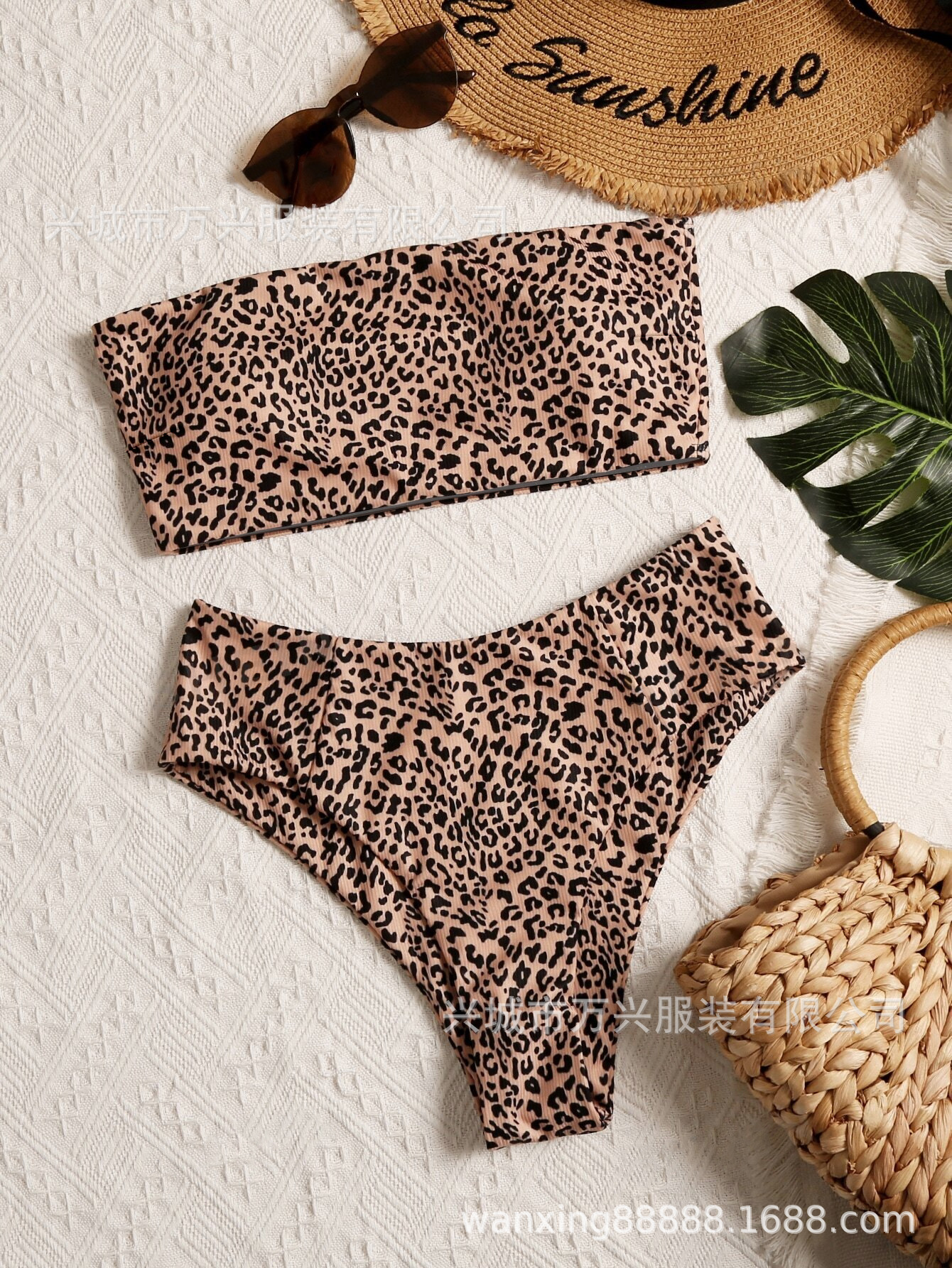 2025 유럽과 미국의 새로운 섹시한 레오파드 프린트 하이 웨이스트 스플릿 수영복 여성용 튜브 탑 Amazon AliExpress 비키니 수영복스토어 가기