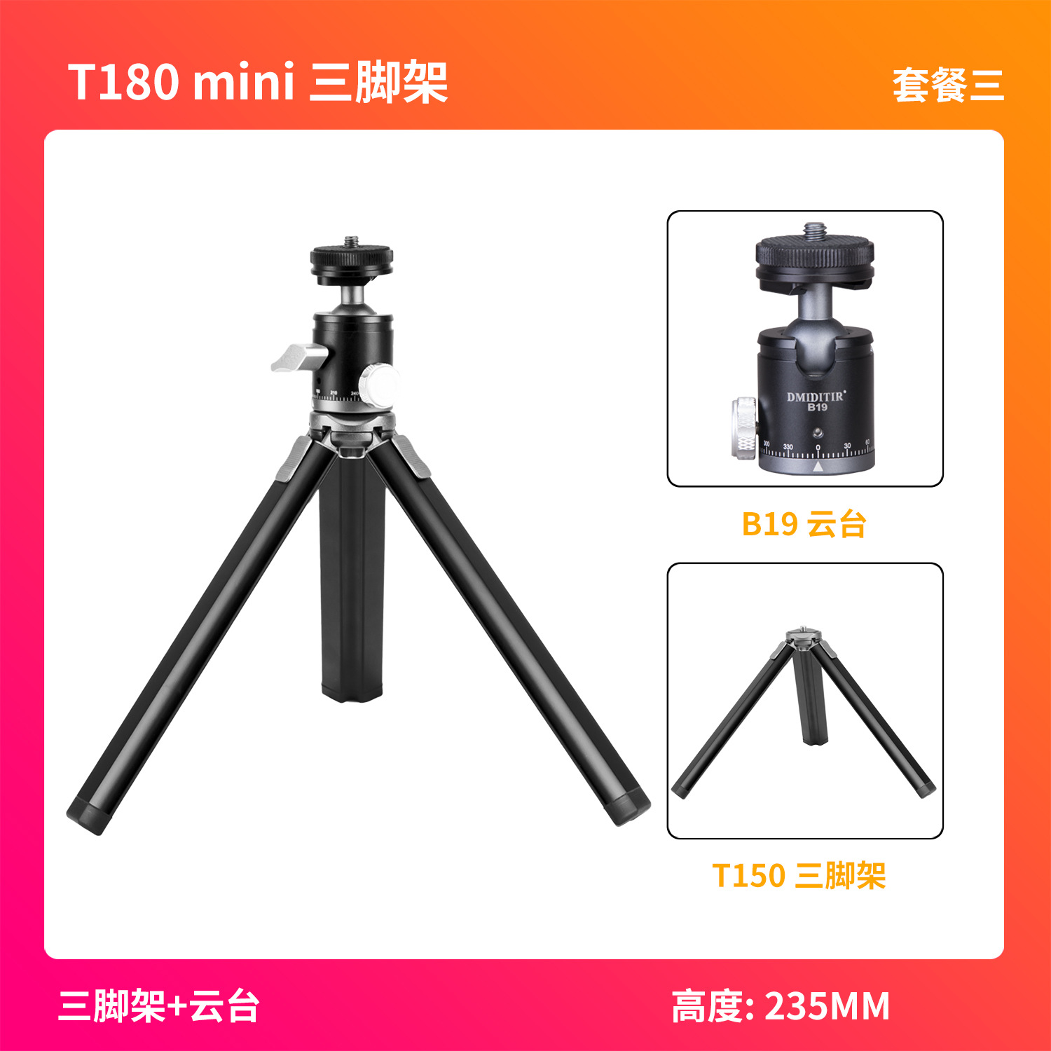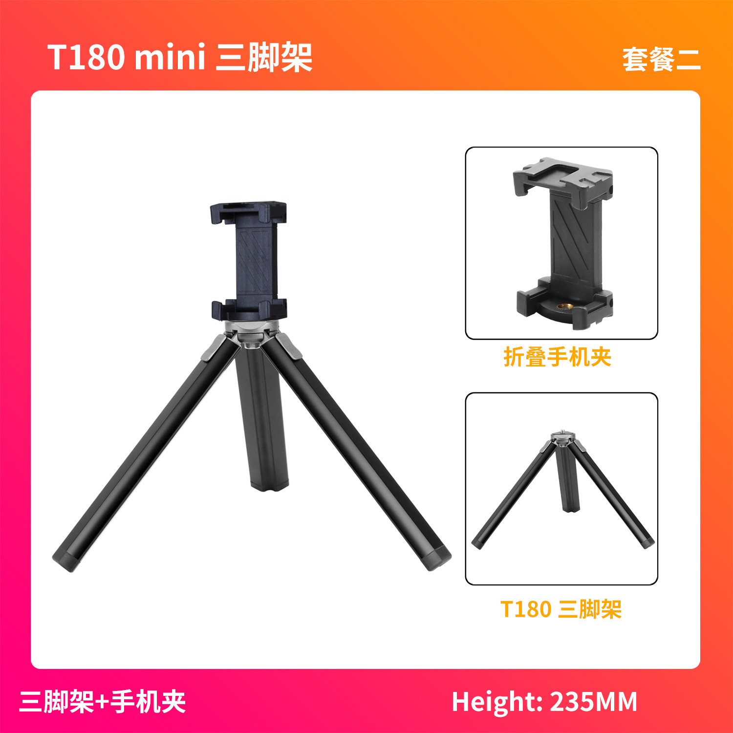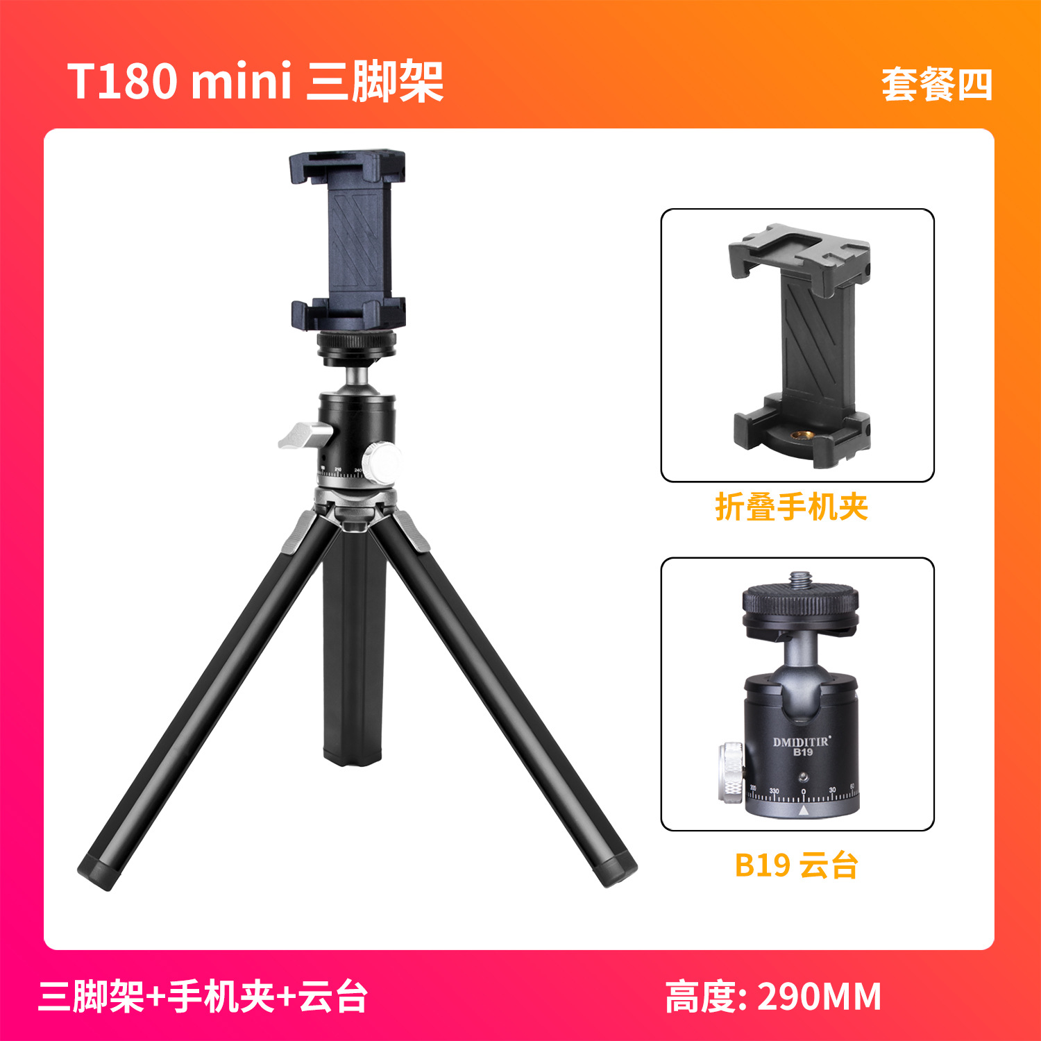 • T180-단일 삼각대 + 휴대폰 클립