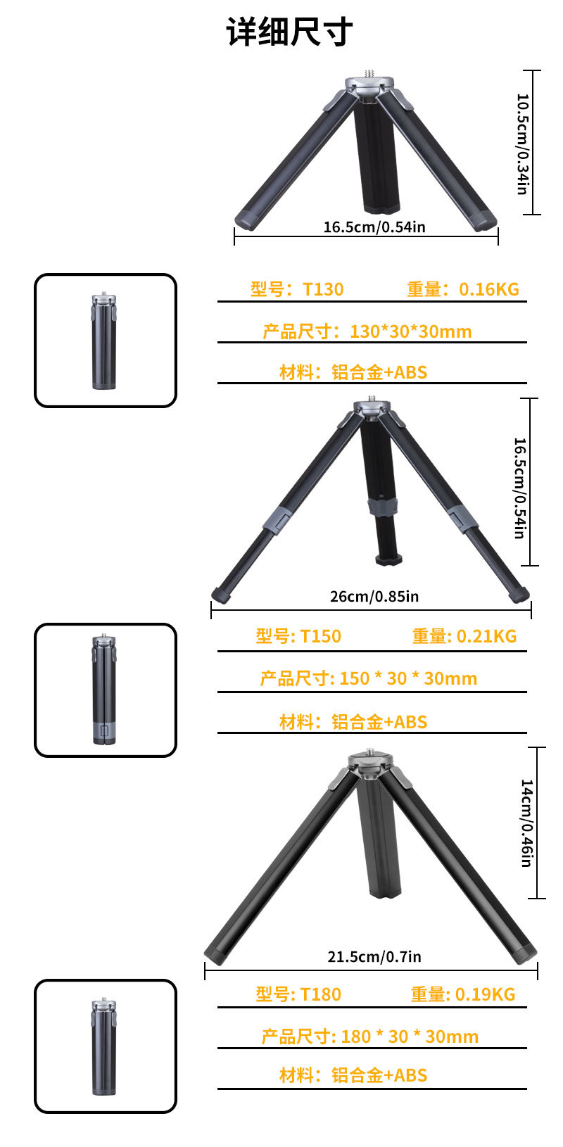 T130, T150, T180 금속 데스크탑 확장 브래킷 확장 금속 미니 삼각대 휴대폰 홀더